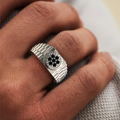 Jeder kennt das Design dieser bekannten Uhrenmarke. Mit Platin Verbindungen ist dieser massive Platin Nout Herrenring perfekt für trendige, erfolgreiche Männer geeignet. Ein Mann, der sich mit einem markanten Herrenring mit 0.252 crt Schwarz Diamant schmücken möchte. Zeigen Sie allen, woraus Sie gemacht sind!Unsere Goldschmiede kreieren Ihren individuellen Herrenring leidenschaftlich, mit größter Sorgfalt und nach Ihren Wünschen. Das Platin Herrenring, wie hier abgebildet, kann mit unserem Online-Tool individuell angepasst werden. Bitte fragen Sie unsere Schmuckdesigner um Hilfe, wenn Sie Änderungen wünschen, die in unserem Online-Tool nicht verfügbar sind. Gerne beantworten wir Ihnen alle offenen Fragen.Unsere Online-Kollektion wird täglich um neue Schmuckdesigns ergänzt. Unser Team von leidenschaftlichen Designern ist bemüht, außergewöhnliche und vielfältige Designs zu kreieren. Haben Sie einen Ring gesehen, der Ihnen gefällt? Setzen Sie sich mit uns in Verbindung. Basierend auf einem guten Preis/Leistungsverhältnis machen wir Ihnen ein Angebot, das Sie nicht ablehnen können!Mit unserer modernen Technik können wir Schmuckstücke von höchster Qualität mit größter Sorgfalt für Sie entwerfen und anpassen. Unsere Ringe sind immer um 30 Prozent günstiger als bei anderen Juwelieren. Wir fertigen Ringe auf Bestellung, also müssen wir keine großen Lager unterhalten. Wenn Sie ein bestimmtes Budget haben, beraten wir Sie gerne entsprechend.Um es einfacher zu machen, bieten wir eine kostenlose 30-tägige Rücksendung.