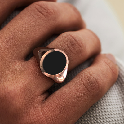 Der massive Herman 3 Siegelring mit 13x11 mm oval form Schwarze Emaille Oberfläche, wie oben gezeigt, ist voll von Tradition. Üblicherweise wurde der Siegelring vom Vater an den Sohn weitergegeben. Beginnen Sie Ihre eigene Tradition mit diesem massive, Roségold Siegelring. Wir würden uns auch sehr freuen, Ihren Ring mit einem Monogramm oder einem Familienwappen gravieren zu dürfen. Bitte sehen Sie sich unsere Datenbank für weitere Anfragen und Optionen an. Sie können die Datenbank am unteren Rand dieser Seite finden. Beginnen Sie eine neue Tradition mit dem klassische Roségold Herman 3 Siegelring. Sobald Sie Ihren Herman 3 Siegelring mit unserem Online-Tool fertiggestellt haben, beginnen unsere Goldschmiede mit der kreativen Anfertigung Ihres Ringes. Dieser wird mit Leidenschaft und Sorgfalt nach alter Handwerkskunst gefertigt. Darüber hinaus sind unsere Edelsteine ehrlich gewonnen. Einfach online mit unserem Online-Tool anpassen, wenn Sie Änderungen wünschen. Wenn Sie spezielle Änderungen an Ihrem Herman 3 Siegelring vornehmen möchten, die in unserem Online-Tool nicht verfügbar sind, wenden Sie sich bitte an unsere Experten.Unser Team von talentierten, leidenschaftlichen Designern fügt unserer Online-Kollektion täglich neue Ringe-Designs hinzu. Unser Ziel dabei ist es, Ihnen eine große Vielfalt an Schmuckstücken anbieten zu können. Bitte zögern Sie nicht, ein Angebot anzufordern, wenn Sie spezielle Wünsche für Ihren Ring haben. Wir garantieren Ihnen ein Angebot, das Sie nicht ablehnen können.Mit unserer modernen Technik können wir Schmuckstücke von höchster Qualität mit größter Sorgfalt für Sie entwerfen und anpassen. Unsere Ringe sind immer um 30 Prozent günstiger als bei anderen Juwelieren. Wir fertigen Ringe auf Bestellung, also müssen wir keine großen Lager unterhalten. Wenn Sie ein bestimmtes Budget haben, beraten wir Sie gerne entsprechend.Um es einfacher zu machen, bieten wir eine kostenlose 30-tägige Rücksendung.