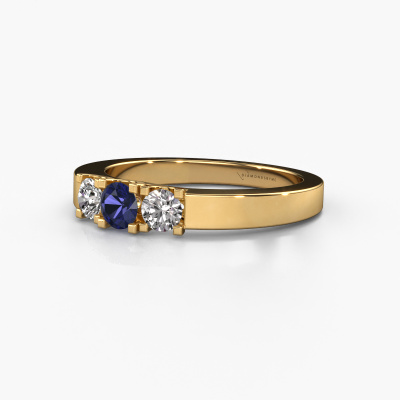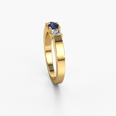 Dieser 3 Stone Ring wird Selina 1 genannt. Diese Art von Ring wird als Memoire ring bezeichnet, da seine Edelsteine in einer durchgehenden Linie angeordnet sind. Dadurch kann er einfach mit anderen Ringen kombiniert werden. Das Band dieses 14 Karat Gold Ring ist in einer Kombination aus Saphir und Diamant besetzt. Sie können ganz einfach online die Kombination auswählen, die Sie bevorzugen. Wie Sie sehen, wird bei diesem Gold Memoire Ring mehre Saphir gesetzt. Der Memoire ring steht für Zusammenwirken. Und genau das tun diese Edelsteine, zusammenwirken. Zusammen geben sie dem Band eines moderne Ring einen schönen Effekt! So ein bedeutungsvoller Ring, finden Sie nicht auch? Alle von uns ausgesuchten Saphir werden von unserem erfahrenen Goldschiede in Handarbeit eingefasst. Das ist eine präzise Aufgabe, die nur durch die Kombination von purer Handwerkskunst und dem Einsatz neuester Techniken erfolgreich durchgeführt werden kann, um eine optimale Wirkung zu erzielen. Um eine perfekte Lichtreflexion zu erzeugen, müssen alle Edelsteine auf die gleiche Weise perfekt ausgerichtet sein. Während der Fertigung wird der Goldschmied Meister daher ständig die Lichtreflexion überwachen, um zu gewährleisten, dass die Saphir perfekt ausgerichtet sind. Das erfordert eine geschickte Hand und viel Geduld, aber dann wird das Endprodukt zu einem echten Kunstwerk. Und genau das ist unsere Mission!Mit unserer modernen Technik können wir Schmuckstücke von höchster Qualität mit größter Sorgfalt für Sie entwerfen und anpassen. Unsere Ringe sind immer um 30 Prozent günstiger als bei anderen Juwelieren. Wir fertigen Ringe auf Bestellung, also müssen wir keine großen Lager unterhalten. Wenn Sie ein bestimmtes Budget haben, beraten wir Sie gerne entsprechend.Unsere Online-Kollektion wird täglich um neue Schmuckdesigns ergänzt. Unser Team von leidenschaftlichen Designern ist bemüht, außergewöhnliche und vielfältige Designs zu kreieren. Haben Sie einen Ring gesehen, der Ihnen gefällt? Setzen Sie sich mit uns in Verbindung. Basierend auf einem guten Preis/Leistungsverhältnis machen wir Ihnen ein Angebot, das Sie nicht ablehnen können!Um es einfacher zu machen, bieten wir eine kostenlose 30-tägige Rücksendung.
