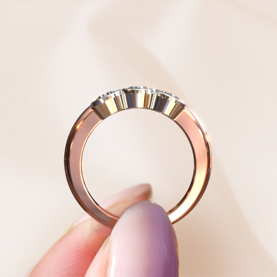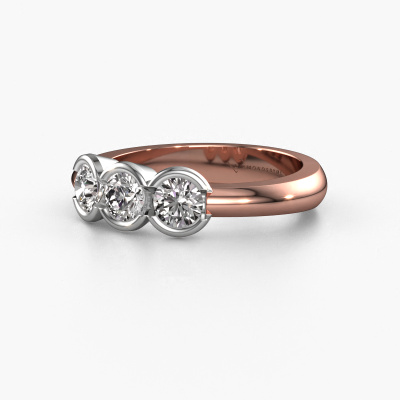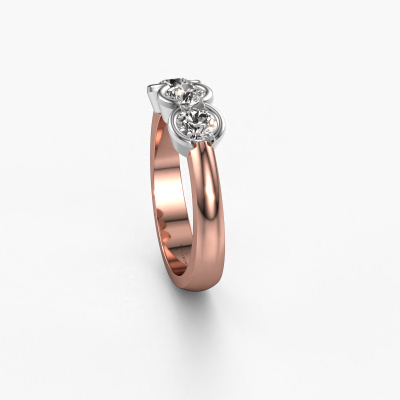 Dieser 3 Stone Ring wird Lotte 3 genannt. Diese Art von Ring wird als Memoire ring bezeichnet, da seine Edelsteine in einer durchgehenden Linie angeordnet sind. Dadurch kann er einfach mit anderen Ringen kombiniert werden. Das Band dieses 14 Karat Roségold Ring ist in einer Kombination aus Diamant und Diamant besetzt. Sie können ganz einfach online die Kombination auswählen, die Sie bevorzugen. Wie Sie sehen, wird bei diesem Roségold Memoire Ring mehre Diamanten gesetzt. Der Memoire ring steht für Zusammenwirken. Und genau das tun diese Edelsteine, zusammenwirken. Zusammen geben sie dem Band eines moderne Ring einen schönen Effekt! So ein bedeutungsvoller Ring, finden Sie nicht auch? Alle von uns ausgesuchten Diamanten werden von unserem erfahrenen Goldschiede in Handarbeit eingefasst. Das ist eine präzise Aufgabe, die nur durch die Kombination von purer Handwerkskunst und dem Einsatz neuester Techniken erfolgreich durchgeführt werden kann, um eine optimale Wirkung zu erzielen. Um eine perfekte Lichtreflexion zu erzeugen, müssen alle Edelsteine auf die gleiche Weise perfekt ausgerichtet sein. Während der Fertigung wird der Goldschmied Meister daher ständig die Lichtreflexion überwachen, um zu gewährleisten, dass die Diamanten perfekt ausgerichtet sind. Das erfordert eine geschickte Hand und viel Geduld, aber dann wird das Endprodukt zu einem echten Kunstwerk. Und genau das ist unsere Mission!Durch die Kombination modernster Technik mit uralter Handwerkskunst können wir alle Ringe in unserem eigenen Studio anfertigen. Jedes Schmuckstück wird auf Anfrage gefertigt. Das ist vorteilhaft, weil wir Ihnen dadurch einen Preis anbieten können, den Sie nirgendwo anders finden.Unser Team von talentierten, leidenschaftlichen Designern fügt unserer Online-Kollektion täglich neue Ring-Designs hinzu. Unser Ziel dabei ist es, Ihnen eine große Vielfalt an Schmuckstücken anbieten zu können. Bitte zögern Sie nicht, ein Angebot anzufordern, wenn Sie spezielle Wünsche für Ihren Ring haben. Wir garantieren Ihnen ein Angebot, das Sie nicht ablehnen können.Um es einfacher zu machen, bieten wir eine kostenlose 30-tägige Rücksendung.