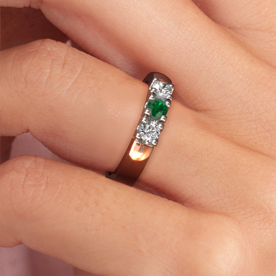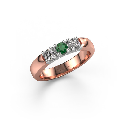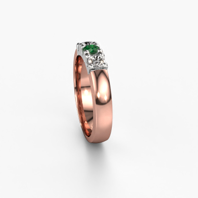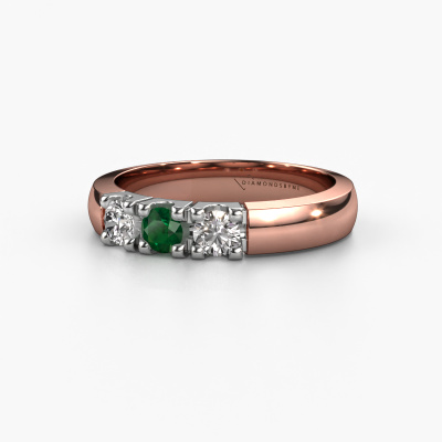 Dieser 3 Stone Ring wird Rianne 3 genannt. Diese Art von Ring wird als Memoire ring bezeichnet, da seine Edelsteine in einer durchgehenden Linie angeordnet sind. Dadurch kann er einfach mit anderen Ringen kombiniert werden. Das Band dieses 14 Karat Roségold Ring ist in einer Kombination aus Smaragd und Diamant besetzt. Sie können ganz einfach online die Kombination auswählen, die Sie bevorzugen. Wie Sie sehen, wird bei diesem Roségold Memoire Ring mehre Smaragd gesetzt. Der Memoire ring steht für Zusammenwirken. Und genau das tun diese Edelsteine, zusammenwirken. Zusammen geben sie dem Band eines klassische Ring einen schönen Effekt! So ein bedeutungsvoller Ring, finden Sie nicht auch? Alle von uns ausgesuchten Smaragd werden von unserem erfahrenen Goldschiede in Handarbeit eingefasst. Das ist eine präzise Aufgabe, die nur durch die Kombination von purer Handwerkskunst und dem Einsatz neuester Techniken erfolgreich durchgeführt werden kann, um eine optimale Wirkung zu erzielen. Um eine perfekte Lichtreflexion zu erzeugen, müssen alle Edelsteine auf die gleiche Weise perfekt ausgerichtet sein. Während der Fertigung wird der Goldschmied Meister daher ständig die Lichtreflexion überwachen, um zu gewährleisten, dass die Smaragd perfekt ausgerichtet sind. Das erfordert eine geschickte Hand und viel Geduld, aber dann wird das Endprodukt zu einem echten Kunstwerk. Und genau das ist unsere Mission!Nach Erhalt Ihrer Bestellung beginnen unsere Goldschmiede mit Leidenschaft den kreativen Prozess und fertigen Ihren Ring in unserem eigenen Studio. Da wir keine großen Lager haben, werden diese Kosten nicht an Sie weitergegeben. Unsere Preisgestaltung ist der Beweis dafür! Wir bieten Schmuck zum niedrigsten Preis, garantiert.Unser Team von talentierten, leidenschaftlichen Designern fügt unserer Online-Kollektion täglich neue Ringe-Designs hinzu. Unser Ziel dabei ist es, Ihnen eine große Vielfalt an Schmuckstücken anbieten zu können. Bitte zögern Sie nicht, ein Angebot anzufordern, wenn Sie spezielle Wünsche für Ihren Ring haben. Wir garantieren Ihnen ein Angebot, das Sie nicht ablehnen können.Um es einfacher zu machen, bieten wir eine kostenlose 30-tägige Rücksendung.