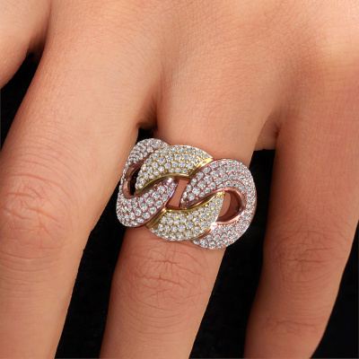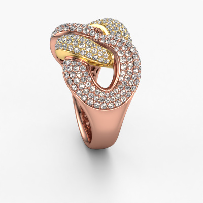 Dieser Ring mit Pavé-Fassung wird Kylie 3 15mm genannt. Dieser Ring aus 14 Karat Roségold ist komplett rund mit Zirkonia 0.8 mm besetzt. Das Band dieses Roségold Ring ist mit Reihen von Zirkonia besetzt, die weder Anfang noch Ende zu haben
