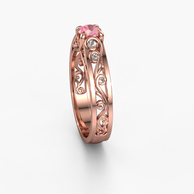 Haben Sie einen Vintage-Fetisch? Dann passt dieser Roségold Ring perfekt zu Ihnen. Er hat ein zeitgemäßes Design, basierend auf klassischen Designs. Ein leicht romantisches, außergewöhnliches Design! Sogar noch mehr, wenn Sie ihn nach Ihren Wünschen anpassen. Dieser besondere Quinty Ring ist mit exquisiten Turmalin rosa besetzt. Wie Sie sehen können, können Sie einfach einen Edelstein wählen, der zu Ihrem Stil passt. Jeder Edelstein wird sorgfältig von unseren Händlern ausgewählt, die auf der ganzen Welt verteilt sind. Nichts als die besten Edelsteine für unseren erfahrenen Goldschiede! Schließlich ist es seine Krönung!Der besondere Quinty Ring, wie hier abgebildet, kann ganz nach Ihren Wünschen gestaltet werden. Unser Online-Tool bietet viele verschiedene Möglichkeiten. Bitte kontaktieren Sie uns, wenn Sie Änderungen an Ihrem Quinty Ring wünschen, die in unserem Online-Tool nicht verfügbar sind.Durch die Kombination modernster Technik mit uralter Handwerkskunst können wir alle Ringe in unserem eigenen Studio anfertigen. Jedes Schmuckstück wird auf Anfrage gefertigt. Das ist vorteilhaft, weil wir Ihnen dadurch einen Preis anbieten können, den Sie nirgendwo anders finden.Um es einfacher zu machen, bieten wir eine kostenlose 30-tägige Rücksendung.