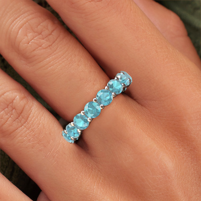 Das ist unser Michelle full 4.2-Ring. Dieser spezielle Typ wird als Eternity ring bezeichnet und ist mit einer durchgehenden Linie von identisch geschliffenen Edelsteinen besetzt. Er ist aus 14 Karat Weißgold und mit kleineren Blau Topas 4.2 mm besetzt. Dieser Weißgold Eternity Ring ist eine wunderschöne und sinnvolle Möglichkeit, Ihrem Antrag eine besondere Note zu verleihen. Die herrlich gleichmäßig geformten Blaue Topas sind rund um den Ring eingefasst. Die identischen Blaue Topas werden sorgfältig ausgewählt, um dem Ring eine maximale Wirkung zu verleihen. Denken Sie daran, dass wir natürliche Ressourcen verwenden. Daher sind kleine Unterschiede zwischen den Steinen üblich. Der besondere Effekt wird durch die präzise Positionierung der Blaue Topas noch verstärkt. Dies erfordert äußerste Präzision und eine geschickte Hand. Für unsere erfahrenen Juweliere ist die pure Leidenschaft. Am Ende bekommen Sie einen Vorsteckring mit einer Reihe von Blaue Topas, die weder Anfang noch Ende zu haben scheinen. Das perfekte Symbol für Ihre Liebe zu ihr! Ist sie nicht eine Schönheit? Nachdem Sie Ihre Bestellung aufgegeben haben, beginnen unsere Goldschmiede mit dem kreativen Prozess der Herstellung Ihres Michelle full 4.2 Ring. Wir haben keine Lager. Das ist vorteilhaft, da diese Kosten nicht an Sie weitergegeben werden. Daher sind wir in der Lage, Schmuck zu außergewöhnlich niedrigen Preisen anzubieten.Unsere Online-Kollektion wird täglich um neue Schmuckdesigns ergänzt. Unser Team von leidenschaftlichen Designern ist bemüht, außergewöhnliche und vielfältige Designs zu kreieren. Haben Sie einen Ring gesehen, der Ihnen gefällt? Setzen Sie sich mit uns in Verbindung. Basierend auf einem guten Preis/Leistungsverhältnis machen wir Ihnen ein Angebot, das Sie nicht ablehnen können!Um es einfacher zu machen, bieten wir eine kostenlose 30-tägige Rücksendung.