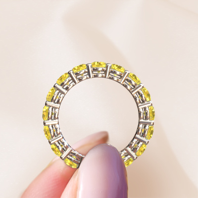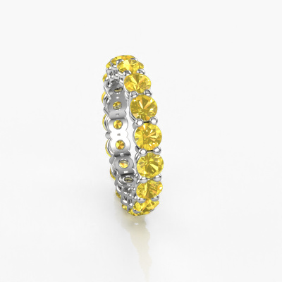 Das ist unser Michelle full 3.7-Ring. Dieser spezielle Typ wird als eternity Ring bezeichnet und ist mit einer durchgehenden Linie von identisch geschliffenen Edelsteinen besetzt. Er ist aus Platin und mit kleineren 3.7 mm Gelb Saphir besetzt. Die erstaunlichen Gelb Saphir sind identisch in der Größe und im Ringband platziert. Unsere Gelb Saphir werden sorgfältig ausgewählt, damit sie identisch sind und somit das beste Ergebnis erzielen. Um das beste Ergebnis zu erzielen, positioniert unser Juwelier alle Gelb Saphir von Hand und mit größter Sorgfalt. Unsere Juweliere haben nur ein Ziel, nämlich den perfekten Ring zu kreieren. Deshalb lieben wir, was wir tun. Am Ende bekommen Sie einen atemberaubenden, moderne Platin Vorsteckring mit einer Reihe von Gelb Saphir, die weder Anfang noch Ende zu haben scheinen. Das perfekte Symbol für Ihre unsterbliche Liebe zu ihr! Ist sie nicht eine Schönheit? Da wir unsere eigenen Ringe entwerfen und liefern, können wir Ihnen einen Ring zu einem Preis anbieten, den Sie nirgendwo anders finden. Ein Ring wird auf Bestellung angefertigt, wodurch kein überschüssiges Material anfällt. So können wir Ihnen ein gutes Angebot zum besten Preis machen. Wir verstehen, dass es sich riskant anfühlt, Ihren Ring online zu kaufen. Jedoch helfen wir Ihnen gerne beim Designprozess unter Berücksichtigung Ihres Budgets.Unser Team von talentierten, leidenschaftlichen Designern fügt unserer Online-Kollektion täglich neue Ringe-Designs hinzu. Unser Ziel dabei ist es, Ihnen eine große Vielfalt an Schmuckstücken anbieten zu können. Bitte zögern Sie nicht, ein Angebot anzufordern, wenn Sie spezielle Wünsche für Ihren Ring haben. Wir garantieren Ihnen ein Angebot, das Sie nicht ablehnen können.Um es einfacher zu machen, bieten wir eine kostenlose 30-tägige Rücksendung.
