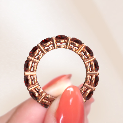 Das ist unser Michelle full 4.7-Ring. Dieser spezielle Typ wird als eternity Ring bezeichnet und ist mit einer durchgehenden Linie von identisch geschliffenen Edelsteinen besetzt. Er ist aus 14 Karat Roségold und mit kleineren 4.7 mm Granat besetzt. Die erstaunlichen Granat sind identisch in der Größe und im Ringband platziert. Unsere Granat werden sorgfältig ausgewählt, damit sie identisch sind und somit das beste Ergebnis erzielen. Um das beste Ergebnis zu erzielen, positioniert unser Juwelier alle Granat von Hand und mit größter Sorgfalt. Unsere Juweliere haben nur ein Ziel, nämlich den perfekten Ring zu kreieren. Deshalb lieben wir, was wir tun. Am Ende bekommen Sie einen atemberaubenden, exklusive Roségold Vorsteckring mit einer Reihe von Granat, die weder Anfang noch Ende zu haben scheinen. Das perfekte Symbol für Ihre unsterbliche Liebe zu ihr! Ist sie nicht eine Schönheit? Da wir unsere eigenen Ringe entwerfen und liefern, können wir Ihnen einen Ring zu einem Preis anbieten, den Sie nirgendwo anders finden. Ein Ring wird auf Bestellung angefertigt, wodurch kein überschüssiges Material anfällt. So können wir Ihnen ein gutes Angebot zum besten Preis machen. Wir verstehen, dass es sich riskant anfühlt, Ihren Ring online zu kaufen. Jedoch helfen wir Ihnen gerne beim Designprozess unter Berücksichtigung Ihres Budgets.Unser Team von talentierten, leidenschaftlichen Designern fügt unserer Online-Kollektion täglich neue Ring-Designs hinzu. Unser Ziel dabei ist es, Ihnen eine große Vielfalt an Schmuckstücken anbieten zu können. Bitte zögern Sie nicht, ein Angebot anzufordern, wenn Sie spezielle Wünsche für Ihren Ring haben. Wir garantieren Ihnen ein Angebot, das Sie nicht ablehnen können.Um es einfacher zu machen, bieten wir eine kostenlose 30-tägige Rücksendung.