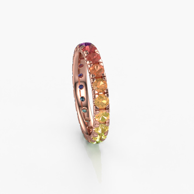 Das ist unser Jackie 3.0-Ring. Dieser spezielle Typ wird als eternity Ring bezeichnet und ist mit einer durchgehenden Linie von identisch geschliffenen Edelsteinen besetzt. Er ist aus 14 Karat Roségold und mit kleineren 3 mm Rainbow Saphir 1 besetzt. Die erstaunlichen Rainbow Saphir 1 sind identisch in der Größe und im Ringband platziert. Unsere Rainbow Saphir 1 werden sorgfältig ausgewählt, damit sie identisch sind und somit das beste Ergebnis erzielen. Um das beste Ergebnis zu erzielen, positioniert unser Juwelier alle Rainbow Saphir 1 von Hand und mit größter Sorgfalt. Unsere Juweliere haben nur ein Ziel, nämlich den perfekten Ring zu kreieren. Deshalb lieben wir, was wir tun. Am Ende bekommen Sie einen atemberaubenden, moderne Roségold Vorsteckring mit einer Reihe von Rainbow Saphir 1, die weder Anfang noch Ende zu haben scheinen. Das perfekte Symbol für Ihre unsterbliche Liebe zu ihr! Ist sie nicht eine Schönheit? Durch die Kombination modernster Technik mit uralter Handwerkskunst können wir alle Ringe in unserem eigenen Studio anfertigen. Jedes Schmuckstück wird auf Anfrage gefertigt. Das ist vorteilhaft, weil wir Ihnen dadurch einen Preis anbieten können, den Sie nirgendwo anders finden.