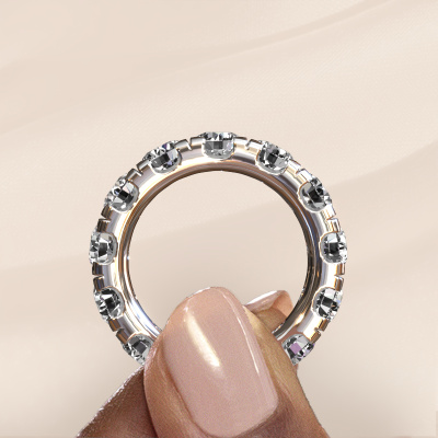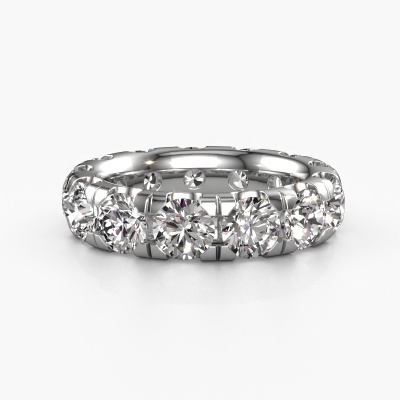 Das ist unser Jackie 5.0-Ring. Dieser spezielle Typ wird als eternity Ring bezeichnet und ist mit einer durchgehenden Linie von identisch geschliffenen Edelsteinen besetzt. Er ist aus 14 Karat Weißgold und mit kleineren 0.50 crt Diamanten besetzt. Die erstaunlichen Diamanten sind identisch in der Größe und im Ringband platziert. Unsere Diamanten werden sorgfältig ausgewählt, damit sie identisch sind und somit das beste Ergebnis erzielen. Um das beste Ergebnis zu erzielen, positioniert unser Juwelier alle Diamanten von Hand und mit größter Sorgfalt. Unsere Juweliere haben nur ein Ziel, nämlich den perfekten Ring zu kreieren. Deshalb lieben wir, was wir tun. Am Ende bekommen Sie einen atemberaubenden, exklusive Weißgold Vorsteckring mit einer Reihe von Diamanten, die weder Anfang noch Ende zu haben scheinen. Das perfekte Symbol für Ihre unsterbliche Liebe zu ihr! Ist sie nicht eine Schönheit? Nach Erhalt Ihrer Bestellung beginnen unsere Goldschmiede mit Leidenschaft den kreativen Prozess und fertigen Ihren Ring in unserem eigenen Studio. Da wir keine großen Lager haben, werden diese Kosten nicht an Sie weitergegeben. Unsere Preisgestaltung ist der Beweis dafür! Wir bieten Schmuck zum niedrigsten Preis, garantiert.Unsere talentierten, leidenschaftlichen Designer fügen unserer Online-Kollektion täglich neue Designs hinzu. Zusammen versuchen sie, eine vielfältige Kollektion feinster Schmuckstücke zu erstellen. Wenn Sie es vorziehen, einen Ring nach Ihrem eigenen Entwurf zu machen, können Sie gerne ein Angebot anfordern. Wir machen Ihnen ein großartiges Angebot, basierend auf Qualität und Preis.Um es einfacher zu machen, bieten wir eine kostenlose 30-tägige Rücksendung.