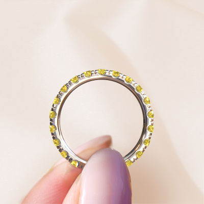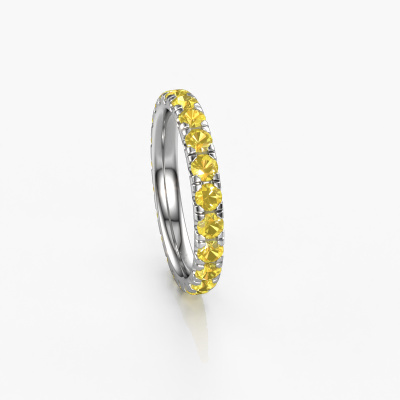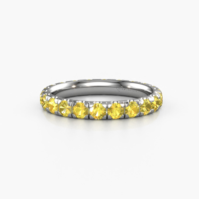 Das ist unser Jackie 2.7-Ring. Dieser spezielle Typ wird als eternity Ring bezeichnet und ist mit einer durchgehenden Linie von identisch geschliffenen Edelsteinen besetzt. Er ist aus 14 Karat Weißgold und mit kleineren 2.7 mm Gelb Saphir besetzt. Die erstaunlichen Gelb Saphir sind identisch in der Größe und im Ringband platziert. Unsere Gelb Saphir werden sorgfältig ausgewählt, damit sie identisch sind und somit das beste Ergebnis erzielen. Um das beste Ergebnis zu erzielen, positioniert unser Juwelier alle Gelb Saphir von Hand und mit größter Sorgfalt. Unsere Juweliere haben nur ein Ziel, nämlich den perfekten Ring zu kreieren. Deshalb lieben wir, was wir tun. Am Ende bekommen Sie einen atemberaubenden, moderne Weißgold Vorsteckring mit einer Reihe von Gelb Saphir, die weder Anfang noch Ende zu haben scheinen. Das perfekte Symbol für Ihre unsterbliche Liebe zu ihr! Ist sie nicht eine Schönheit? Da wir unsere eigenen Ringe entwerfen und liefern, können wir Ihnen einen Ring zu einem Preis anbieten, den Sie nirgendwo anders finden. Ein Ring wird auf Bestellung angefertigt, wodurch kein überschüssiges Material anfällt. So können wir Ihnen ein gutes Angebot zum besten Preis machen. Wir verstehen, dass es sich riskant anfühlt, Ihren Ring online zu kaufen. Jedoch helfen wir Ihnen gerne beim Designprozess unter Berücksichtigung Ihres Budgets.Unser Team von talentierten, leidenschaftlichen Designern fügt unserer Online-Kollektion täglich neue Ringe-Designs hinzu. Unser Ziel dabei ist es, Ihnen eine große Vielfalt an Schmuckstücken anbieten zu können. Bitte zögern Sie nicht, ein Angebot anzufordern, wenn Sie spezielle Wünsche für Ihren Ring haben. Wir garantieren Ihnen ein Angebot, das Sie nicht ablehnen können.Um es einfacher zu machen, bieten wir eine kostenlose 30-tägige Rücksendung.