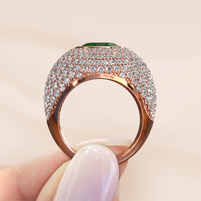 Suchen Sie einen Pavé Fassung Ring mit einem auffälligen,einzelnen Edelstein? Wie gefällt Ihnen dieser Armida Ring? Dieser Roségold Armida Ring ist mit einem wunderschönen 9x7 mm oval Smaragd besetzt. Der Smaragd wird von unseren Smaragd-Lieferanten sorgfältig ausgewählt. Anschließend werden diese Edelsteine nach alter Tradition von unserem Goldschiede gesetzt. Der Ring wird dann zur Perfektion poliert und zu einem einzigartigen Ring mit einem atemberaubenden Smaragd. Speziell für Sie angefertigt. Wie gefällt Ihnen dieser exklusive Roségold Ring? Passen Sie diesen Armida Ring einfach mit unserem Online-Tool an. Anschließend wird Ihr persönlicher, Pavé Fassung Armida Ring in Handarbeit von unseren Goldschmieden angefertigt. Edelmetalle und Edelsteine können nach Ihren Wünschen angepasst werden. Haben Sie spezielle Wünsche, die in unserem Online-Tool nicht verfügbar sind? Setzen Sie sich mit uns in Verbindung. Wir passen Ihren persönlichen exklusive Ring nach Ihren Wünschen an.Da wir unsere eigenen Ringe entwerfen und liefern, können wir Ihnen einen Ring zu einem Preis anbieten, den Sie nirgendwo anders finden. Ein Ring wird auf Bestellung angefertigt, wodurch kein überschüssiges Material anfällt. So können wir Ihnen ein gutes Angebot zum besten Preis machen. Wir verstehen, dass es sich riskant anfühlt, Ihren Ring online zu kaufen. Jedoch helfen wir Ihnen gerne beim Designprozess unter Berücksichtigung Ihres Budgets.Um es einfacher zu machen, bieten wir eine kostenlose 30-tägige Rücksendung.