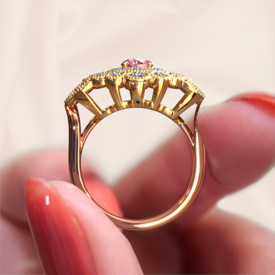 Haben Sie einen Vintage-Fetisch? Dann passt dieser Roségold Ring perfekt zu Ihnen. Er hat ein zeitgemäßes Design, basierend auf klassischen Designs. Ein leicht romantisches, außergewöhnliches Design! Sogar noch mehr, wenn Sie ihn nach Ihren Wünschen anpassen. Dieser Flower Elia Ring ist mit exquisiten rosa Labordiamanten besetzt. Wie Sie sehen können, können Sie einfach einen Edelstein wählen, der zu Ihrem Stil passt. Jeder Edelstein wird sorgfältig von unseren Händlern ausgewählt, die auf der ganzen Welt verteilt sind. Nichts als die besten Edelsteine für unseren erfahrenen Goldschiede! Schließlich ist es seine Krönung!Unsere Goldschmiede kreieren Ihren individuellen Ring leidenschaftlich, mit größter Sorgfalt und nach Ihren Wünschen. Das Roségold Ring, wie hier abgebildet, kann mit unserem Online-Tool individuell angepasst werden. Bitte fragen Sie unsere Schmuckdesigner um Hilfe, wenn Sie Änderungen wünsche, die in unserem Online-Tool nicht verfügbar sind. Gerne beantworten wir Ihnen alle offenen Fragen.Da wir unsere eigenen Ringe entwerfen und liefern, können wir Ihnen einen Ring zu einem Preis anbieten, den Sie nirgendwo anders finden. Ein Ring wird auf Bestellung angefertigt, wodurch kein überschüssiges Material anfällt. So können wir Ihnen ein gutes Angebot zum besten Preis machen. Wir verstehen, dass es sich riskant anfühlt, Ihren Ring online zu kaufen. Jedoch helfen wir Ihnen gerne beim Designprozess unter Berücksichtigung Ihres Budgets.Um es einfacher zu machen, bieten wir eine kostenlose 30-tägige Rücksendung.