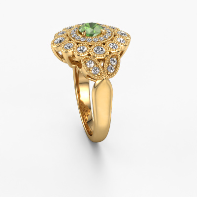 Haben Sie einen Vintage-Fetisch? Dann passt dieser Gold Ring perfekt zu Ihnen. Er hat ein zeitgemäßes Design, basierend auf klassischen Designs. Ein leicht romantisches, außergewöhnliches Design! Sogar noch mehr, wenn Sie ihn nach Ihren Wünschen anpassen. Dieser Flower Elia Ring ist mit exquisiten grüner Turmalin besetzt. Wie Sie sehen können, können Sie einfach einen Edelstein wählen, der zu Ihrem Stil passt. Jeder Edelstein wird sorgfältig von unseren Händlern ausgewählt, die auf der ganzen Welt verteilt sind. Nichts als die besten Edelsteine für unseren erfahrenen Goldschiede! Schließlich ist es seine Krönung!Unsere Goldschmiede kreieren Ihren individuellen Ring leidenschaftlich, mit größter Sorgfalt und nach Ihren Wünschen. Das Gold Ring, wie hier abgebildet, kann mit unserem Online-Tool individuell angepasst werden. Bitte fragen Sie unsere Schmuckdesigner um Hilfe, wenn Sie Änderungen wünsche, die in unserem Online-Tool nicht verfügbar sind. Gerne beantworten wir Ihnen alle offenen Fragen.Da wir unsere eigenen Ringe entwerfen und liefern, können wir Ihnen einen Ring zu einem Preis anbieten, den Sie nirgendwo anders finden. Ein Ring wird auf Bestellung angefertigt, wodurch kein überschüssiges Material anfällt. So können wir Ihnen ein gutes Angebot zum besten Preis machen. Wir verstehen, dass es sich riskant anfühlt, Ihren Ring online zu kaufen. Jedoch helfen wir Ihnen gerne beim Designprozess unter Berücksichtigung Ihres Budgets.Um es einfacher zu machen, bieten wir eine kostenlose 30-tägige Rücksendung.