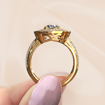 Dieser exklusive Gold Eliana Ring ist ein wahres Kunstwerk! Dieser Ring besteht aus 14 Karat Gold und ist mit 1.54 crt rund Lab grown Diamant besetzt. Die kleinsten Ornamente werden mit viel Geduld und großer Leidenschaft von unserem Goldschiede gefertigt. Um diesen Ring mit großer Präzision zu schaffen, erfordert dieses Handwerk ein scharfes Auge und eine geschickte Hand. Eine Herausforderung, die bei unseren erfahrenen Goldschmieden eine Leidenschaft entfacht. Die exquisiten Lab grown Diamant sind so gesetzt, dass ihre einzigartigen Qualitäten verstärkt werden. Dies verleiht dem Ring eine noch glamouröse Erscheinung. Der Ring ist für sich einzigartig, wegen der natürlichen Edelsteine, die wir speziell für diesen Eliana Ring ausgewählt haben. Und indem Sie das Edelmetall selbst auswählen, kreieren Sie einen einzigartigen Ring. Sobald Sie Ihren Eliana Ring mit unserem Online-Tool fertiggestellt haben, beginnen unsere Goldschmiede mit der kreativen Anfertigung Ihres Ringes. Dieser wird mit Leidenschaft und Sorgfalt nach alter Handwerkskunst gefertigt. Darüber hinaus sind unsere Edelsteine ehrlich gewonnen. Wenn Sie spezielle Änderungen an Ihrem Eliana Ring vornehmen möchten, die in unserem Online-Tool nicht verfügbar sind, wenden Sie sich bitte an unsere Experten.Durch die Kombination modernster Technik mit uralter Handwerkskunst können wir alle Ringe in unserem eigenen Studio anfertigen. Jedes Schmuckstück wird auf Anfrage gefertigt. Das ist vorteilhaft, weil wir Ihnen dadurch einen Preis anbieten können, den Sie nirgendwo anders finden.Um es einfacher zu machen, bieten wir eine kostenlose 30-tägige Rücksendung.