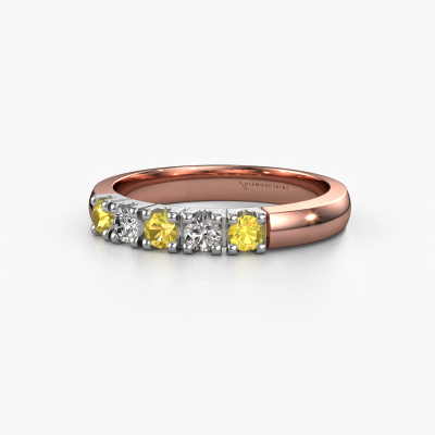 Dieser Memoire Ring wird Rianne 5 genannt. Diese Art von Ring wird als Memoire ring bezeichnet, da seine Edelsteine in einer durchgehenden Linie angeordnet sind. Dadurch kann er einfach mit anderen Ringen kombiniert werden. Das Band dieses 14 Karat Roségold Ring ist in einer Kombination aus Gelb Saphir und Diamant besetzt. Sie können ganz einfach online die Kombination auswählen, die Sie bevorzugen. Wie Sie sehen, wird bei diesem Roségold Memoire Ring mehre Gelb Saphir gesetzt. Der Memoire ring steht für Zusammenwirken. Und genau das tun diese Edelsteine, zusammenwirken. Zusammen geben sie dem Band eines klassische Ring einen schönen Effekt! So ein bedeutungsvoller Ring, finden Sie nicht auch? Alle von uns ausgesuchten Gelb Saphir werden von unserem erfahrenen Goldschiede in Handarbeit eingefasst. Das ist eine präzise Aufgabe, die nur durch die Kombination von purer Handwerkskunst und dem Einsatz neuester Techniken erfolgreich durchgeführt werden kann, um eine optimale Wirkung zu erzielen. Um eine perfekte Lichtreflexion zu erzeugen, müssen alle Edelsteine auf die gleiche Weise perfekt ausgerichtet sein. Während der Fertigung wird der Goldschmied Meister daher ständig die Lichtreflexion überwachen, um zu gewährleisten, dass die Gelb Saphir perfekt ausgerichtet sind. Das erfordert eine geschickte Hand und viel Geduld, aber dann wird das Endprodukt zu einem echten Kunstwerk. Und genau das ist unsere Mission!Durch die Kombination modernster Technik mit uralter Handwerkskunst können wir alle Ringe in unserem eigenen Studio anfertigen. Jedes Schmuckstück wird auf Anfrage gefertigt. Das ist vorteilhaft, weil wir Ihnen dadurch einen Preis anbieten können, den Sie nirgendwo anders finden.