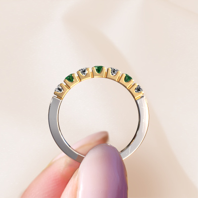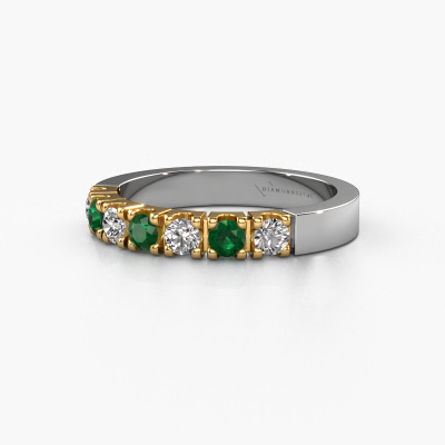 Dieser 7 Stone Ring wird Dana 7 genannt. Diese Art von Ring wird als Memoire ring bezeichnet, da seine Edelsteine in einer durchgehenden Linie angeordnet sind. Dadurch kann er einfach mit anderen Ringen kombiniert werden. Das Band dieses 14 Karat Weißgold Ring ist in einer Kombination aus Smaragd und Lab-grown Diamant besetzt. Sie können ganz einfach online die Kombination auswählen, die Sie bevorzugen. Wie Sie sehen, wird bei diesem Weißgold Memoire Ring mehre Smaragd gesetzt. Der Memoire ring steht für Zusammenwirken. Und genau das tun diese Edelsteine, zusammenwirken. Zusammen geben sie dem Band eines moderne Ring einen schönen Effekt! So ein bedeutungsvoller Ring, finden Sie nicht auch? Alle von uns ausgesuchten Smaragd werden von unserem erfahrenen Goldschiede in Handarbeit eingefasst. Das ist eine präzise Aufgabe, die nur durch die Kombination von purer Handwerkskunst und dem Einsatz neuester Techniken erfolgreich durchgeführt werden kann, um eine optimale Wirkung zu erzielen. Um eine perfekte Lichtreflexion zu erzeugen, müssen alle Edelsteine auf die gleiche Weise perfekt ausgerichtet sein. Während der Fertigung wird der Goldschmied Meister daher ständig die Lichtreflexion überwachen, um zu gewährleisten, dass die Smaragd perfekt ausgerichtet sind. Das erfordert eine geschickte Hand und viel Geduld, aber dann wird das Endprodukt zu einem echten Kunstwerk. Und genau das ist unsere Mission!Nach Erhalt Ihrer Bestellung beginnen unsere Goldschmiede mit Leidenschaft den kreativen Prozess und fertigen Ihren Ring in unserem eigenen Studio. Da wir keine großen Lager haben, werden diese Kosten nicht an Sie weitergegeben. Unsere Preisgestaltung ist der Beweis dafür! Wir bieten Schmuck zum niedrigsten Preis, garantiert.Unser Team von talentierten, leidenschaftlichen Designern fügt unserer Online-Kollektion täglich neue Ringe-Designs hinzu. Unser Ziel dabei ist es, Ihnen eine große Vielfalt an Schmuckstücken anbieten zu können. Bitte zögern Sie nicht, ein Angebot anzufordern, wenn Sie spezielle Wünsche für Ihren Ring haben. Wir garantieren Ihnen ein Angebot, das Sie nicht ablehnen können.Um es einfacher zu machen, bieten wir eine kostenlose 30-tägige Rücksendung.