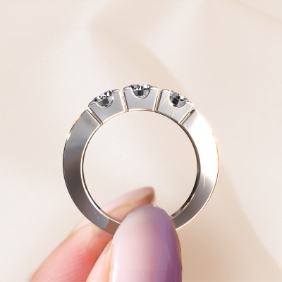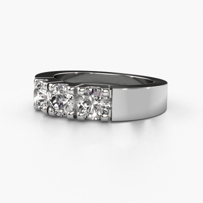 Dieser 3 Stone Ring wird Dana 3 genannt. Diese Art von Ring wird als Memoire ring bezeichnet, da seine Edelsteine in einer durchgehenden Linie angeordnet sind. Dadurch kann er einfach mit anderen Ringen kombiniert werden. Das Band dieses 14 Karat Weißgold Ring ist in einer Kombination aus Diamant und Lab-grown Diamant besetzt. Sie können ganz einfach online die Kombination auswählen, die Sie bevorzugen. Wie Sie sehen, wird bei diesem Weißgold Memoire Ring mehre Diamanten gesetzt. Der Memoire ring steht für Zusammenwirken. Und genau das tun diese Edelsteine, zusammenwirken. Zusammen geben sie dem Band eines moderne Ring einen schönen Effekt! So ein bedeutungsvoller Ring, finden Sie nicht auch? Alle von uns ausgesuchten Diamanten werden von unserem erfahrenen Goldschiede in Handarbeit eingefasst. Das ist eine präzise Aufgabe, die nur durch die Kombination von purer Handwerkskunst und dem Einsatz neuester Techniken erfolgreich durchgeführt werden kann, um eine optimale Wirkung zu erzielen. Um eine perfekte Lichtreflexion zu erzeugen, müssen alle Edelsteine auf die gleiche Weise perfekt ausgerichtet sein. Während der Fertigung wird der Goldschmied Meister daher ständig die Lichtreflexion überwachen, um zu gewährleisten, dass die Diamanten perfekt ausgerichtet sind. Das erfordert eine geschickte Hand und viel Geduld, aber dann wird das Endprodukt zu einem echten Kunstwerk. Und genau das ist unsere Mission!Nach Erhalt Ihrer Bestellung beginnen unsere Goldschmiede mit Leidenschaft den kreativen Prozess und fertigen Ihren Ring in unserem eigenen Studio. Da wir keine großen Lager haben, werden diese Kosten nicht an Sie weitergegeben. Unsere Preisgestaltung ist der Beweis dafür! Wir bieten Schmuck zum niedrigsten Preis, garantiert.Unsere talentierten, leidenschaftlichen Designer fügen unserer Online-Kollektion täglich neue Designs hinzu. Zusammen versuchen sie, eine vielfältige Kollektion feinster Schmuckstücke zu erstellen. Wenn Sie es vorziehen, einen Ring nach Ihrem eigenen Entwurf zu machen, können Sie gerne ein Angebot anfordern. Wir machen Ihnen ein großartiges Angebot, basierend auf Qualität und Preis.Um es einfacher zu machen, bieten wir eine kostenlose 30-tägige Rücksendung.