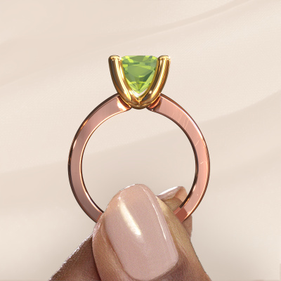 Suchen Sie einen Edelsteine Ring mit einem auffälligen,einzelnen Edelstein? Wie gefällt Ihnen dieser Clelia CUS Ring? Dieser Roségold Clelia CUS Ring ist mit einem wunderschönen 8 mm cussion Peridot besetzt. Der Peridot wird von unseren Peridot-Lieferanten sorgfältig ausgewählt. Anschließend werden diese Edelsteine nach alter Tradition von unserem Goldschiede gesetzt. Der Ring wird dann zur Perfektion poliert und zu einem einzigartigen Ring mit einem atemberaubenden Peridot. Speziell für Sie angefertigt. Sobald Sie Ihren Clelia CUS Ring mit unserem Online-Tool fertiggestellt haben, beginnen unsere Goldschmiede mit der kreativen Anfertigung Ihres Ringes. Dieser wird mit Leidenschaft und Sorgfalt nach alter Handwerkskunst gefertigt. Darüber arbeiten wir mit ehrlichen Edelsteinen. Einfach online mit unserem Online-Tool anpassen, wenn Sie Änderungen wünschen. Wenn Sie spezielle Änderungen an Ihrem Clelia CUS Roségold Ring vornehmen möchten, die in unserem Online-Tool nicht verfügbar sind, wenden Sie sich bitte an unsere Experten.Da wir unsere eigenen Ringe entwerfen und liefern, können wir Ihnen einen Ring zu einem Preis anbieten, den Sie nirgendwo anders finden. Ein Ring wird auf Bestellung angefertigt, wodurch kein überschüssiges Material anfällt. So können wir Ihnen ein gutes Angebot zum besten Preis machen. Wir verstehen, dass es sich riskant anfühlt, Ihren Ring online zu kaufen. Jedoch helfen wir Ihnen gerne beim Designprozess unter Berücksichtigung Ihres Budgets.Um es einfacher zu machen, bieten wir eine kostenlose 30-tägige Rücksendung.