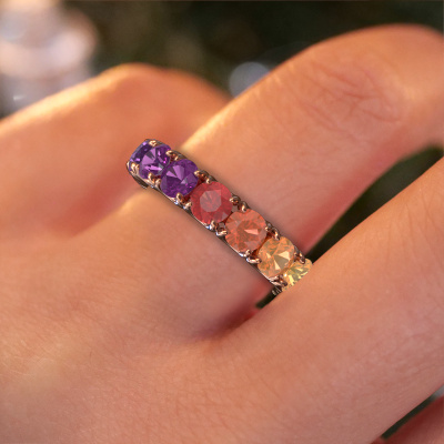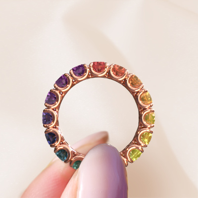 Dieser Estee 4.2 Ring in 14 Karat Roségold ist mit Rainbow Saphir 1 besetzt. Dieser Roségold Estee 4.2 Ring ist die perfekte Ergänzung zu Ihrer Ring-Kollektion! Wie der Name schon sagt, ist es ein Ring, der an einem Finger mit einem anderen Ring kombiniert werden kann. Das gibt Ihnen die Möglichkeit, Ihren eigenen Stil zu schaffen. Ein Ring repräsentiert normalerweise eine bestimmte Erinnerung an jemand Besonderen, oder an einen denkwürdigen Moment. Es ist üblich, einen Ring, welcher ein Jubiläum darstellt, mit einem Trauring zu kombinieren. Aber dieser eternity Ring, kombiniert mit Ihren anderen Ringen, ist auch ein klassisches Modeobjekt. Der eternity Estee 4.2 Ring, wie hier abgebildet, kann ganz nach Ihren Wünschen gestaltet werden. Unser Online-Tool bietet viele verschiedene Möglichkeiten. Bitte kontaktieren Sie uns, wenn Sie Änderungen an Ihrem Estee 4.2 Ring wünschen, die in unserem Online-Tool nicht verfügbar sind.Nach Erhalt Ihrer Bestellung beginnen unsere Goldschmiede mit Leidenschaft den kreativen Prozess und fertigen Ihren Ring in unserem eigenen Studio. Da wir keine großen Lager haben, werden diese Kosten nicht an Sie weitergegeben. Unsere Preisgestaltung ist der Beweis dafür! Wir bieten Schmuck zum niedrigsten Preis, garantiert.Um es einfacher zu machen, bieten wir eine kostenlose 30-tägige Rücksendung.