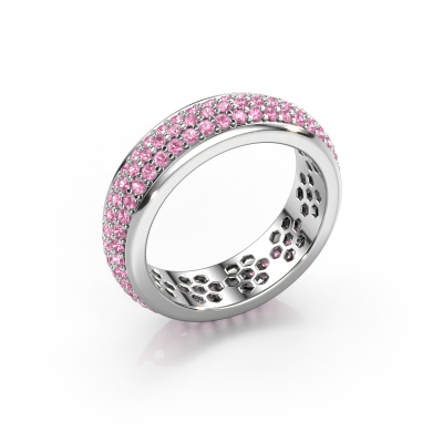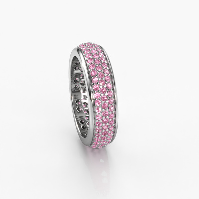 Das ist unser Tara-Ring. Dieser spezielle Typ wird als eternity Ring bezeichnet und ist mit einer durchgehenden Linie von identisch geschliffenen Edelsteinen besetzt. Er ist aus 14 Karat Weißgold und mit kleineren 1.3 mm Pink Saphir besetzt. Die erstaunlichen Pink Saphir sind identisch in der Größe und im Ringband platziert. Unsere Pink Saphir werden sorgfältig ausgewählt, damit sie identisch sind und somit das beste Ergebnis erzielen. Um das beste Ergebnis zu erzielen, positioniert unser Juwelier alle Pink Saphir von Hand und mit größter Sorgfalt. Unsere Juweliere haben nur ein Ziel, nämlich den perfekten Ring zu kreieren. Deshalb lieben wir, was wir tun. Am Ende bekommen Sie einen atemberaubenden, exklusive Weißgold Ring mit einer Reihe von Pink Saphir, die weder Anfang noch Ende zu haben scheinen. Das perfekte Symbol für Ihre unsterbliche Liebe zu ihr! Ist sie nicht eine Schönheit? Nachdem Sie Ihre Bestellung aufgegeben haben, beginnen unsere Goldschmiede mit dem kreativen Prozess der Herstellung Ihres Tara Ring. Wir haben keine Lager. Das ist vorteilhaft, da diese Kosten nicht an Sie weitergegeben werden. Daher sind wir in der Lage, Schmuck zu außergewöhnlich niedrigen Preisen anzubieten.
