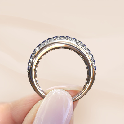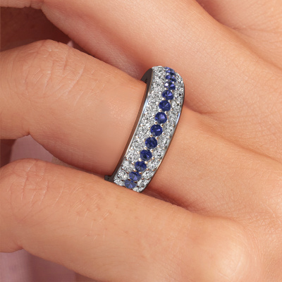 Dieser Ring mit Pavé-Fassung wird Emely 8 genannt. Dieser Ring aus 14 Karat Weißgold ist komplett rund mit Saphir 1.9 mm besetzt. Das Band dieses Weißgold Ring ist mit Reihen von Saphir besetzt, die weder Anfang noch Ende zu haben scheinen. Unser Goldschiede wählt die Edelsteine sorgfältig aus und setzt sie mit höchster Präzision. Für maximalen Glanz müssen die Saphir perfekt ausgerichtet sein. Beim kunstvollen Fertigen und Polieren des Schmucks wird der Lichteinfall ständig überwacht, bis der Goldschmiedemeister mit dem Ergebnis zufrieden ist. Von Ihnen entworfen, speziell für Sie gefertigt!Der reiche Emely 8 Ring, wie hier abgebildet, kann ganz nach Ihren Wünschen gestaltet werden. Unser Online-Tool bietet viele verschiedene Möglichkeiten. Bitte kontaktieren Sie uns, wenn Sie Änderungen an Ihrem Emely 8 Ring wünschen, die in unserem Online-Tool nicht verfügbar sind.Nach Erhalt Ihrer Bestellung beginnen unsere Goldschmiede mit Leidenschaft den kreativen Prozess und fertigen Ihren Ring in unserem eigenen Studio. Da wir keine großen Lager haben, werden diese Kosten nicht an Sie weitergegeben. Unsere Preisgestaltung ist der Beweis dafür! Wir bieten Schmuck zum niedrigsten Preis, garantiert.Um es einfacher zu machen, bieten wir eine kostenlose 30-tägige Rücksendung.