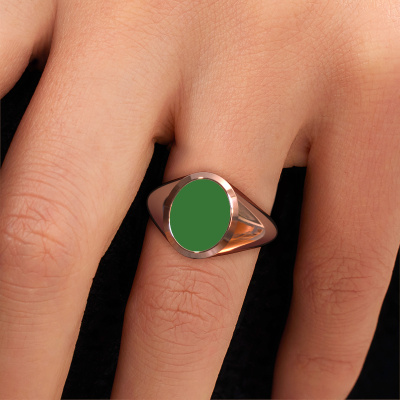 Dieser Roségold Siegelring ist ein wahres Kunstwerk! Das ist unser elegante Evon 2 Siegelring und ist mit 12x10 mm oval form grüne Emaille besetzt. In unserem Studio verwenden wir eine Kombination aus den neuesten Techniken und traditioneller Handwerkskunst, sodass wir einen perfekten Siegelring kreieren können. Unsere erfahrenen Goldschmiede sind fasziniert von Siegelringen. Der Siegelring kann mit Initialen oder einem Familienwappen graviert werden. Siegelringe mit Familienwappen können von Generation zu Generation weitergegeben werden und das ist normalerweise auch der Fall. Obendrein ist ein Siegelring ein schönes, edles Schmuckstück, das wieder im Trend liegt. Mehr als ein Grund, die Tradition zu beginnen oder zu erweitern. Bitte sehen Sie sich unsere Online-Datenbank für weitere Optionen zu Gravuren an. Die verschiedenen Abteilungen innerhalb der Online-Datenbank finden Sie am unteren Rand dieser Seite. Sobald Sie Ihren Evon 2 Siegelring mit unserem Online-Tool fertiggestellt haben, beginnen unsere Goldschmiede mit der kreativen Anfertigung Ihres Ringes. Dieser wird mit Leidenschaft und Sorgfalt nach alter Handwerkskunst gefertigt. Darüber arbeiten wir mit ehrlichen Edelsteinen. Einfach online mit unserem Online-Tool anpassen, wenn Sie Änderungen wünschen. Wenn Sie spezielle Änderungen an Ihrem Evon 2 Roségold Siegelring vornehmen möchten, die in unserem Online-Tool nicht verfügbar sind, wenden Sie sich bitte an unsere Experten.Nach Erhalt Ihrer Bestellung beginnen unsere Goldschmiede mit Leidenschaft den kreativen Prozess und fertigen Ihren Ring in unserem eigenen Studio. Da wir keine großen Lager haben, werden diese Kosten nicht an Sie weitergegeben. Unsere Preisgestaltung ist der Beweis dafür! Wir bieten Schmuck zum niedrigsten Preis, garantiert.Um es einfacher zu machen, bieten wir eine kostenlose 30-tägige Rücksendung.
