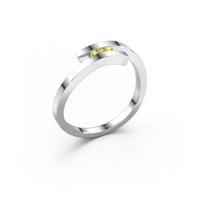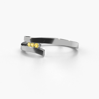 Dieser Ring wird Juliette genannt. Er besteht aus 14 Karat Weißgold und ist mit 1.6 mm Gelb Saphir besetzt. Suchen Sie nach einem einzigartigen Weißgold Ring mit modernem Aussehen? Dann ist das der perfekte Ring für Sie. Einfach nach Ihren Wünschen anpassen. Perfekt für eine moderne, zeitgenössische Frau! Dieser grazile Ring ist mit atemberaubenden Gelb Saphir geschmückt. Er wurde sorgfältig ausgewählt, weil Ihr Ring nur mit den schönsten Edelsteinen gekrönt sein soll. Unser erfahrener Goldschiede kreiert Ihren Ring in unserem eigenen Studio, wo der Gelb Saphir mit großer Sorgfalt gesetzt wird. Der Ring wird dann perfekt poliert, um einen schönen Ring zu erhalten. Nach Erhalt Ihrer Bestellung beginnen unsere Goldschmiede mit Leidenschaft den kreativen Prozess und fertigen Ihren Ring in unserem eigenen Studio. Da wir keine großen Lager haben, werden diese Kosten nicht an Sie weitergegeben. Unsere Preisgestaltung ist der Beweis dafür! Wir bieten Schmuck zum niedrigsten Preis, garantiert.