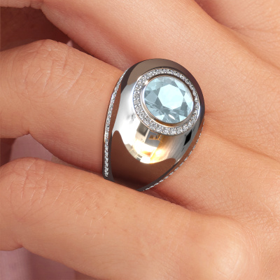 Das ist ein atemberaubender, Edelsteine Weißgold Roxann Ring. Er ist mit Aquamarin besetzt. Ein Designer-Ring, passend für noble Frauen. Der Ring wurde von unseren eigenen Goldschmieden entworfen. In unserem Atelier verwenden wir eine Kombination