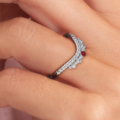 Dieser Nica B Vorsteckring in 14 Karat Weißgold ist mit Rubin besetzt. Dieser Weißgold Nica B Ring ist die perfekte Ergänzung zu Ihrer Ring-Kollektion! Wie der Name schon sagt, ist es ein Ring, der an einem Finger mit einem anderen Ring kombiniert werden kann. Das gibt Ihnen die Möglichkeit, Ihren eigenen Stil zu schaffen. Ein Vorsteckring repräsentiert normalerweise eine bestimmte Erinnerung an jemand Besonderen, oder an einen denkwürdigen Moment. Es ist üblich, einen Vorsteckring, welcher ein Jubiläum darstellt, mit einem Trauring zu kombinieren. Aber dieser modische Ring, kombiniert mit Ihren anderen Ringen, ist auch ein klassisches Modeobjekt. Der modische Nica B Vorsteckring, wie hier abgebildet, kann ganz nach Ihren Wünschen gestaltet werden. Unser Online-Tool bietet viele verschiedene Möglichkeiten. Bitte kontaktieren Sie uns, wenn Sie Änderungen an Ihrem Nica B Vorsteckring wünschen, die in unserem Online-Tool nicht verfügbar sind.Mit unserer modernen Technik können wir Schmuckstücke von höchster Qualität mit größter Sorgfalt für Sie entwerfen und anpassen. Unsere Ringe sind immer um 30 Prozent günstiger als bei anderen Juwelieren. Wir fertigen Ringe auf Bestellung, also müssen wir keine großen Lager unterhalten. Wenn Sie ein bestimmtes Budget haben, beraten wir Sie gerne entsprechend.Um es einfacher zu machen, bieten wir eine kostenlose 30-tägige Rücksendung.