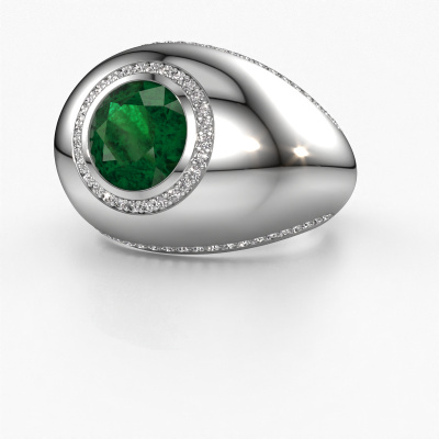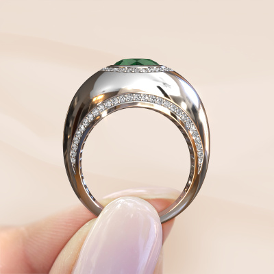 Das ist ein atemberaubender, Edelsteine Weißgold Roxann Ring. Er ist mit Smaragd besetzt. Ein Designer-Ring, passend für noble Frauen. Der Ring wurde von unseren eigenen Goldschmieden entworfen. In unserem Atelier verwenden wir eine Kombination