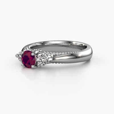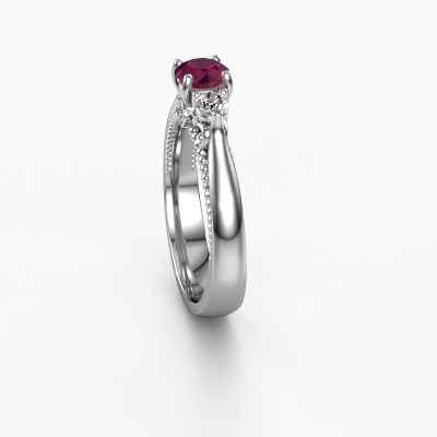 Dieser Ring aus Platin heißt Tiffani und hat 5 mm Rhodolit. Dieser ajour Platin 3-stone Verlobungsring ist ein wahres Kunstwerk! Die Ornamente werden mit viel Geduld und großer Leidenschaft gefertigt. Um diesen Ring mit großer Präzision zu schaffen, erfordert dieses Handwerk ein scharfes Auge und eine geschickte Hand. Eine Herausforderung, die bei unseren erfahrenen Juwelieren ein Feuer entfacht. Die exquisiten Rhodolit sind auf eine besondere Art und Weise gefasst, so dass sie noch mehr hervorstechen. Dies verleiht dem Ring eine noch glamourösere Erscheinung. Der Ring an sich ist schon wegen der Edelsteine einzigartig, die wir speziell für diesen Ring auswählen. Obendrein wählen Sie die Edelmetalle aus, mit denen Ihr einzigartiger Ring für die außergewöhnlichste Frau Ihres Lebens gemacht wird! Jedes Schmuckstück wird von unseren Meister-Goldschmieden in unserem eigenen Studio für Sie gefertigt.Nach Erhalt Ihrer Bestellung beginnen unsere Goldschmiede mit Leidenschaft den kreativen Prozess und fertigen Ihren Verlobungsring in unserem eigenen Studio. Da wir keine großen Lager haben, werden diese Kosten nicht an Sie weitergegeben. Unsere Preisgestaltung ist der Beweis dafür! Wir bieten Schmuck zum niedrigsten Preis, garantiert.Haben Sie irgendwo einen bestimmten Verlobungsring gefunden, den Sie Ihrem Liebsten schenken möchten? Sie können uns gerne sagen, was Sie wollen und wir werden Ihr Design in einen Einzigartigen einzigartige Verlobungsring verwandeln. Sie können die Entwicklungen Ihres Ringdesigns verfolgen, da wir 3D-Zeichnungen verwenden. Das gibt Ihnen eine realistische Vorschau, wie Ihr Design aussehen wird. Sie können auch einen Dummy vorbestellen. Ein Dummy ist ein Kunststoffring, der nach Ihrem Ringdesign gestaltet werden kann. Sie können ihn anprobieren und prüfen, ob seine Breite und Größe für Sie geeignet sind. Wir senden Ihnen gerne ein unverbindliches Angebot zu einem fairen Preis/Leistungsverhältnis. Sie werden in Anbetracht der Qualität des Rings und der Edelsteine überrascht sein.Um es einfacher zu machen, bieten wir eine kostenlose 30-tägige Rücksendung.