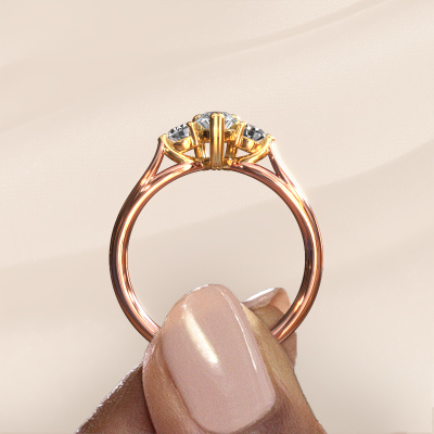 Dieser besondere Verlobungsring aus 14 Karat Roségold mit 0.65 crt Diamant heißt Amie per. Für Sie gibt es nur eine Person in Ihrem Leben, die in einer Menschenmenge auffällt. Nur eine, die Ihr Herz höherschlagen lässt. Ein wahres Juwel! Sie verdient vor allem ein besonderes Geschenk. Ein einzigartiges, maßgefertigtes Schmuckstück, das allein zu ihren Ehren angefertigt wurde. Wir glauben, dass dieser Ring perfekt für Ihren besonderen Moment ist. Jedes Detail dieses exklusiven, Roségold 3-stone Verlobungsring wird von Hand ausgewählt, bearbeitet und poliert - von unserem erfahrenen Juwelier in unserem eigenen Studio. Wir streben nach dem perfekten Design und der Zusammensetzung des Rings, damit er die einzigartigen Eigenschaften unserer Diamanten unterstreicht und sie noch heller erstrahlen lässt. Es braucht viel Präzision, aber am Ende zahlt es sich wegen der Schönheit des Rings aus. Und das ist unser Hauptziel. Das ist es, was uns begeistert. Das Besondere an unserem Konfigurator ist dass Sie selbst einem Schmuckstück zusammenstellen können zu einem eigenen persönlichen Schmuckstück. Dieser 3-stone Verlobungsring ist gefertigt in der Edelmetall Kombination Roségold mit Gold, aber Sie können also auch wählen aus anderen Farben. Jedes Schmuckstück wird hergestellt von einem Team leidenschaftlicher Goldschmiede und Schmuckdesigner. Das wird Ihr Kronjuwel unbedingt zu einem Blickfang machen.. Durch die Kombination modernster Technik mit uralter Handwerkskunst können wir alle Verlobungsringe in unserem eigenen Studio anfertigen. Jedes Schmuckstück wird auf Anfrage gefertigt. Das ist vorteilhaft, weil wir Ihnen dadurch einen Preis anbieten können, den Sie nirgendwo anders finden.Haben Sie einen bestimmten Ring im Sinn? Eines, dass Sie irgendwo gesehen haben. Bitte zögern Sie nicht, uns zu sagen, was Sie wollen und wir werden Ihr Design in einen Einzigartigen Verlobungsring verwandeln. Sie können die Entwicklungen Ihres Ringdesigns verfolgen, da wir 3D-Zeichnungen verwenden. Das gibt Ihnen eine realistische Vorschau Ihres Designs. Wir senden Ihnen gerne ein unverbindliches Angebot zu einem fairen Preis/Leistungsverhältnis. Es wird Sie erstaunen.Um es einfacher zu machen, bieten wir eine kostenlose 30-tägige Rücksendung.