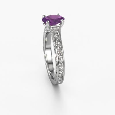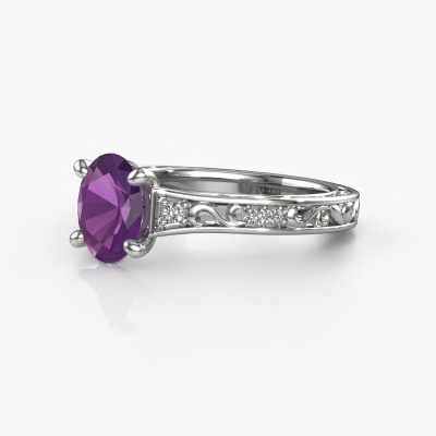 Der oben gezeigte Ring wird Mallory ovl genannt. Es ist ein Pavé Solitär Ring, da er einen zentralen Edelstein und ein Band mit Pavé-Fassung hat. Dieser 14 Karat Weißgold ring ist mit einem 8x6 mm oval Amethyst-Mittelstein besetzt und das Band hat eine Pavé-Fassung mit Lab grown Diamant. Jedes Schmuckstück wird hergestellt mit Leidenschaft und Liebe, von einem unserer Meister-Goldschmiede.Dieser traditionell Weißgold Pavé Solitär Verlobungsring mit Pavé-Fassung hat einen exquisiten, oval Amethyst als Mittelstein. Um den zentralen Stein noch mehr zu betonen, hat das Band eine Pavé-Fassung mit weiteren Lab grown Diamant. Durch die offenen Krappen kann das Licht aus mehreren Winkeln auf den Amethyst treffen und der Amethyst-Ring funkelt noch mehr. Das obere Foto zeigt die leidenschaftlich handgefertigten Details des Rings. Die hohe Positionierung der Mittelstein ist ein echter Blickfang. Der perfekte Verlobungsring für das Kronjuwel Ihres Lebens!Haben Sie ein bestimmtes Budget? Sie können uns gerne kontaktieren, damit wir Ihre Optionen besprechen können. Wir bieten unsere Verlobungsringe zum garantiert besten Preis, denn wir fertigen sie auf Bestellung. Solche Preise finden Sie nirgendwo anders!Unser Team fügt unserer Online-Kollektion täglich neue Designs hinzu. Unsere Designer und Goldschmiede arbeiten zusammen, um das beste Design zu kreieren. Wir bemühen uns, eine vielfältige Kollektion von Schmuckstücken anzubieten. Vielleicht haben Sie ein bestimmtes Design im Sinn. Eines, dass Sie irgendwo gesehen haben. Gerne geben wir Ihnen eine kostenlose Beratung. Wir machen Ihnen ein Angebot, basierend auf einem fairen Preis/Leistungsverhältnis, das Sie verblüffen wird.Um es einfacher zu machen, bieten wir eine kostenlose 30-tägige Rücksendung.