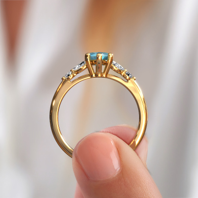 Der oben gezeigte Ring wird Megan MRQ genannt. Es ist ein Pavé Solitär Ring, da er einen zentralen Edelstein und ein Band mit Pavé-Fassung hat. Dieser 14 Karat Gold ring ist mit einem 11x5.5 mm marquise Blau Topas-Mittelstein besetzt und das Band hat eine Pavé-Fassung mit Lab grown Diamant. Jedes Schmuckstück wird hergestellt mit Leidenschaft und Liebe, von einem unserer Meister-Goldschmiede.Dieser Fantasie Gold Pavé Solitär Verlobungsring mit Pavé-Fassung hat einen exquisiten, marquise Blau Topas als Mittelstein. Um den zentralen Stein noch mehr zu betonen, hat das Band eine Pavé-Fassung mit weiteren Lab grown Diamant. Durch die offenen Krappen kann das Licht aus mehreren Winkeln auf den Blau Topas treffen und der Blau Topas-Ring funkelt noch mehr. Das obere Foto zeigt die leidenschaftlich handgefertigten Details des Rings. Die hohe Positionierung der Mittelstein ist ein echter Blickfang. Der perfekte Verlobungsring für das Kronjuwel Ihres Lebens![bestp1v_long]Haben Sie irgendwo einen bestimmten Verlobungsring gefunden, den Sie Ihrem Liebsten schenken möchten? Sie können uns gerne sagen, was Sie wollen und wir werden Ihr Design in einen Einzigartigen Fantasie Verlobungsring verwandeln. Sie können die Entwicklungen Ihres Ringdesigns verfolgen, da wir 3D-Zeichnungen verwenden. Das gibt Ihnen eine realistische Vorschau, wie Ihr Design aussehen wird. Sie können auch einen Dummy vorbestellen. Ein Dummy ist ein Kunststoffring, der nach Ihrem Ringdesign gestaltet werden kann. Sie können ihn anprobieren und prüfen, ob seine Breite und Größe für Sie geeignet sind. Wir senden Ihnen gerne ein unverbindliches Angebot zu einem fairen Preis/Leistungsverhältnis. Sie werden in Anbetracht der Qualität des Rings und der Edelsteine überrascht sein.Um es einfacher zu machen, bieten wir eine kostenlose 30-tägige Rücksendung.