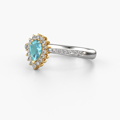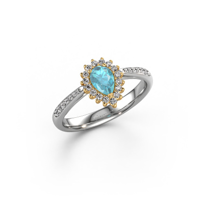 Der oben gezeigte Ring, mit dem Namen Tilly per 2, nennen wir einen Cluster Verlobungsring. Der Cluster Ring trägt einem zentralen Edelstein, umgeben von kleineren Steinen. Diese Version in 14 Karat Weißgold hat einen tropfen Blau Topas von tropfen als Mittelstein, umschlossen von kleineren Diamanten. Was diesen exklusive Weißgold Cluster Ring besonders macht, sind die kleinen Edelsteine rund um den zentralen Blau Topas, die wie eine schöne Blume geformt sind. Der umgebende Steinkranz umrahmt den Mittelstein so, dass er größer erscheint. Diese Art von Verlobungsring wird auch Blumen- oder Rosettenring genannt. Es ist sehr wichtig, dass die kleineren Blaue Topas identisch positioniert sind, so dass es kein Spiel im Licht, sondern eine perfekte Einheit ergibt. Unsere erfahrenen Juweliere erledigen diese Arbeit. Jeder einzelne Stein wird sorgfältig von Hand gesetzt. Während der Herstellung wird der Lichteinfall ständig überwacht, um sicherzustellen, dass der spezielle Cluster-Effekt noch sichtbar ist. Am Ende bekommen Sie den perfekten Verlobungsring mit einem strahlenden Blau Topas Edelstein Herzstück. Sie können sich die Wirkung eines solchen Ringes vorstellen, wenn Sie ihn an ihrem besonderen Tag für die Liebe Ihres Lebens zum Leuchten bringen. Jedes Schmuckstück wird nur für Sie persönlich hergestellt, mit Liebe zum Detail und Design.Nach Erhalt Ihrer Bestellung beginnen unsere Goldschmiede mit Leidenschaft den kreativen Prozess und fertigen Ihren Verlobungsring in unserem eigenen Studio. Da wir keine großen Lager haben, werden diese Kosten nicht an Sie weitergegeben. Unsere Preisgestaltung ist der Beweis dafür! Wir bieten Schmuck zum niedrigsten Preis, garantiert.Verschiedene Arten von neuen Ringen werden täglich von unserem Team angefertigt. Vielleicht haben Sie irgendwo einen Cluster Verlobungsring gefunden. Einen, den Sie Ihrem Liebsten schenken möchten. Bitte zögern Sie nicht, unseren Schmuckdesignern Ihre Gedanken und Ihr Design zu zeigen. Wir würden gerne Ihr Design in einen exklusive Verlobungsring verwandeln. Sie können die Entwicklungen Ihres Ringdesigns verfolgen, da wir sehr detaillierte 3D-Zeichnungen verwenden. Darüber hinaus können Sie einen Dummy des Designs bestellen. Ein Dummy ist ein Kunststoffring, der nach Ihrem Ringdesign gestaltet werden kann. Sie können ihn anprobieren und prüfen, ob der Verlobungsring Ihren Vorstellungen entspricht. Wir senden Ihnen gerne ein unverbindliches Angebot zu einem fairen Preis/Leistungsverhältnis. Das Angebot wird Sie angesichts der Qualität des Rings und der Edelsteine verblüffen.Um es einfacher zu machen, bieten wir eine kostenlose 30-tägige Rücksendung.