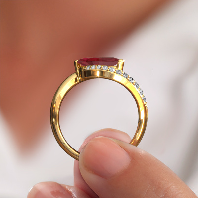 Dieser Verlobungsring aus 585 Gold heißt Aida MRQ side. Sind Sie auf der Suche nach einem design, Gold Verlobungsring mit Rubin 11x5.5 mm, den Sie nach Ihren Wünschen gestalten können? Dieser design Verlobungsring ist mit Rubin besetzt, der sorgfältig für diesen speziellen Ring ausgewählt wurde, um den besten Effekt zu erzielen. Unser erfahrener Juwelier kreiert Ihren Ring in unserem eigenen Studio eine Etage tiefer, wo der Rubin mit großer Sorgfalt eingefasst wird. Der Ring wird dann bearbeitet und poliert, bis er perfekt ist. Nichts als das Beste für die Liebe Ihres Lebens! Das Besondere an unserem Konfigurator ist dass Sie selbst einem Schmuckstück zusammenstellen können zu einem eigenen persönlichen Schmuckstück. Jedes Schmuckstück wird hergestellt mit Leidenschaft und Liebe, von einem unserer Meister-Goldschmiede.. Haben Sie ein bestimmtes Budget? Sie können uns gerne kontaktieren, damit wir Ihre Optionen besprechen können. Wir bieten unsere Verlobungsringe zum garantiert besten Preis, denn wir fertigen sie auf Bestellung. Solche Preise finden Sie nirgendwo anders!Unser Team fügt unserer Online-Kollektion täglich neue Designs hinzu. Unsere Designer und Goldschmiede arbeiten zusammen, um das beste Design zu kreieren. Wir bemühen uns, eine vielfältige Kollektion von Schmuckstücken anzubieten. Vielleicht haben Sie ein bestimmtes Design im Sinn. Eines, dass Sie irgendwo gesehen haben. Gerne geben wir Ihnen eine kostenlose Beratung. Wir machen Ihnen ein Angebot, basierend auf einem fairen Preis/Leistungsverhältnis, das Sie verblüffen wird.Um es einfacher zu machen, bieten wir eine kostenlose 30-tägige Rücksendung.