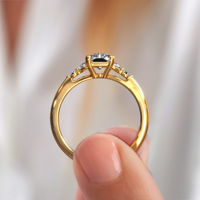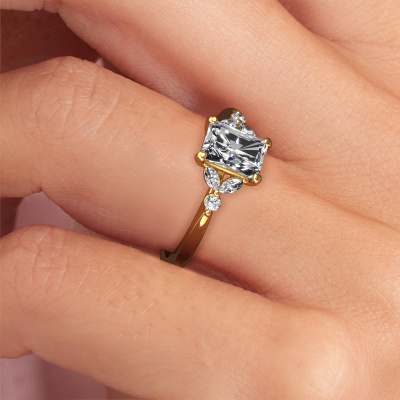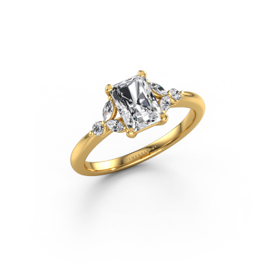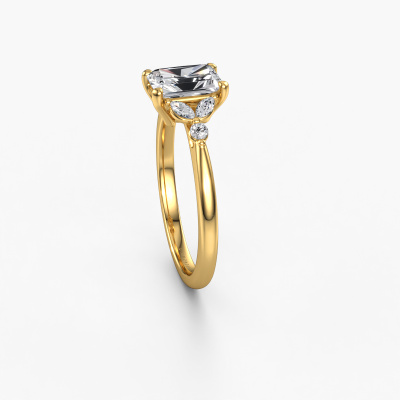 Der oben gezeigte Ring wird Megan RAD genannt. Es ist ein Pavé Solitär Ring, da er einen zentralen Edelstein und ein Band mit Pavé-Fassung hat. Dieser 585 Gold ring ist mit einem 1.00 crt radiant Diamant-Mittelstein besetzt und das Band hat eine Pavé-Fassung mit Lab grown Diamant. Jedes Schmuckstück wird hergestellt mit Leidenschaft und Liebe, von einem unserer Meister-Goldschmiede.Dieser traditionell Gold Pavé Solitär Verlobungsring mit Pavé-Fassung hat einen exquisiten, radiant Diamant als Mittelstein. Um den zentralen Stein noch mehr zu betonen, hat das Band eine Pavé-Fassung mit weiteren Lab grown Diamant. Durch die offenen Krappen kann das Licht aus mehreren Winkeln auf den Diamant treffen und der Diamant-Ring funkelt noch mehr. Das obere Foto zeigt die leidenschaftlich handgefertigten Details des Rings. Die hohe Positionierung der Mittelstein ist ein echter Blickfang. Der perfekte Verlobungsring für das Kronjuwel Ihres Lebens!Mit unserer modernen Technik können wir Schmuckstücke von höchster Qualität mit größter Sorgfalt für Sie entwerfen und anpassen. Unsere Verlobungsringe sind immer um 30 Prozent günstiger als bei anderen Juwelieren. Wir fertigen Verlobungsringe auf Bestellung, also müssen wir keine großen Lager unterhalten. Wenn Sie ein bestimmtes Budget haben, beraten wir Sie gerne entsprechend.Unser Team fügt unserer Online-Kollektion täglich neue Designs hinzu. Unsere Designer und Goldschmiede arbeiten zusammen, um das beste Design zu kreieren. Wir bemühen uns, eine vielfältige Kollektion von Schmuckstücken anzubieten. Vielleicht haben Sie ein bestimmtes Design im Sinn. Eines, dass Sie irgendwo gesehen haben. Gerne geben wir Ihnen eine kostenlose Beratung. Wir machen Ihnen ein Angebot, basierend auf einem fairen Preis/Leistungsverhältnis, das Sie verblüffen wird.Um es einfacher zu machen, bieten wir eine kostenlose 30-tägige Rücksendung.