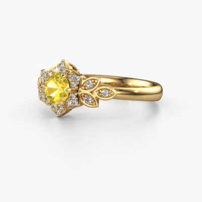 Dieser Verlobungsring aus 14 Karat Gold heißt Tatjana und hat einen 5 mm Gelb Saphir. Ein außergewöhnlicher, Gold Vintage Ring. Einer, der die Liebe Ihres Lebens mit Sicherheit wie ein Gelb Saphir erstrahlen lässt! Das hoffen wir zu erreichen. Dieser Vintage Verlobungsring ist mit exquisiten Gelb Saphir besetzt. Welchen Edelstein Sie aus unserer Auswahl haben möchten, liegt ganz bei Ihnen. Der Edelstein wird mit großer Sorgfalt ausgewählt. Denn wir glauben, dass Ihr zierliche Verlobungsring nur mit dem schönsten Edelstein gekrönt sein darf. Sehen Sie das auch so? Unser erfahrener Juwelier entwirft Ihren Ring in unserem eigenen Studio, wo der Gelb Saphir mit großer Präzision eingefasst wird. Der Ring wird dann bearbeitet und poliert, bis er perfekt ist. Nichts als das Beste für die Liebe Ihres Lebens! Jedes Schmuckstück wird hergestellt mit Leidenschaft und Liebe, von einem unserer Meister-Goldschmiede.Nach Erhalt Ihrer Bestellung beginnen unsere Goldschmiede mit Leidenschaft den kreativen Prozess und fertigen Ihren Verlobungsring in unserem eigenen Studio. Da wir keine großen Lager haben, werden diese Kosten nicht an Sie weitergegeben. Unsere Preisgestaltung ist der Beweis dafür! Wir bieten Schmuck zum niedrigsten Preis, garantiert.Haben Sie irgendwo einen bestimmten Verlobungsring gefunden, den Sie Ihrem Liebsten schenken möchten? Sie können uns gerne sagen, was Sie wollen und wir werden Ihr Design in einen Einzigartigen Vintage Verlobungsring verwandeln. Sie können die Entwicklungen Ihres Ringdesigns verfolgen, da wir 3D-Zeichnungen verwenden. Das gibt Ihnen eine realistische Vorschau, wie Ihr Design aussehen wird. Sie können auch einen Dummy vorbestellen. Ein Dummy ist ein Kunststoffring, der nach Ihrem Ringdesign gestaltet werden kann. Sie können ihn anprobieren und prüfen, ob seine Breite und Größe für Sie geeignet sind. Wir senden Ihnen gerne ein unverbindliches Angebot zu einem fairen Preis/Leistungsverhältnis. Sie werden in Anbetracht der Qualität des Rings und der Edelsteine überrascht sein.Um es einfacher zu machen, bieten wir eine kostenlose 30-tägige Rücksendung.