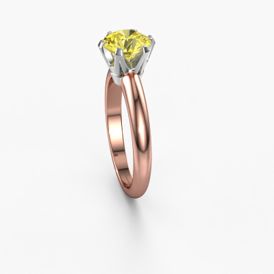 Der oben gezeigte Verlobungsring wird Tiffy 1 genannt. Wir nennen das einen Solitär-Ring, denn er hat einen einzelnen Edelstein. Es ist ein 14 Karat Roségold ring, mit 7 mm rund gelber Labor Diamant. Das Besondere an unserem Konfigurator ist dass Sie selbst einem Schmuckstück zusammenstellen können zu einem eigenen persönlichen Schmuckstück. Dieser Solitäre Verlobungsring ist gefertigt in der Edelmetall Kombination Roségold mit Weißgold, aber Sie können also auch wählen aus anderen Farben. Jedes Schmuckstück wird nur für Sie persönlich hergestellt, mit Liebe zum Detail und Design. Der Solitär-Verlobungsring ist eine Sonderform des Verlobungsring. Seine offenen Krappen ermöglichen, dass Licht aus mehr Winkeln auf den Edelstein trifft. Dieser klassische Verlobungsring ist durch die hohe Positionierung des Edelsteins ein atemberaubender Blickfang. Wir schmücken diesen Solitär-Ring sorgfältig von Hand, damit Sie Ihren Anfrage mit einem einzigartigen Ring würdigen können. Die Liebe Ihres Lebens verdient nur das Beste. Mit unserer modernen Technik können wir Schmuckstücke von höchster Qualität mit größter Sorgfalt für Sie entwerfen und anpassen. Unsere Verlobungsringe sind immer um 30 Prozent günstiger als bei anderen Juwelieren. Wir fertigen Verlobungsringe auf Bestellung, also müssen wir keine großen Lager unterhalten. Wenn Sie ein bestimmtes Budget haben, beraten wir Sie gerne entsprechend.Unsere Designer und Goldschmiede arbeiten jeden Tag zusammen und versuchen, neue Schmuckstücke zu kreieren. Vielleicht haben Sie irgendwo einen schönen, klassische Verlobungsring gefunden, nach dem Ihr einzigartiger Ring gestaltet werden kann. Setzen Sie sich mit uns in Verbindung. Wir machen Ihnen ein Angebot, basierend auf einem fairen Preis/Leistungsverhältnis, das Sie begeistern wird.Um es einfacher zu machen, bieten wir eine kostenlose 30-tägige Rücksendung.