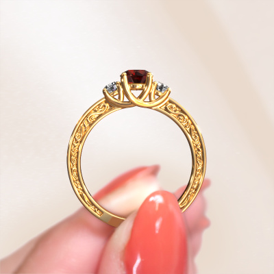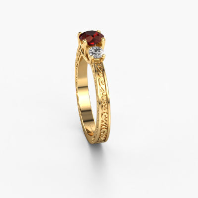 Dieser Verlobungsring aus 14 Karat Gold heißt Betty 1 und hat einen Granat Edelstein. Ein außergewöhnlicher, Gold Vintage Ring. Einer, der die Liebe Ihres Lebens mit Sicherheit wie ein Granat erstrahlen lässt! Das hoffen wir zu erreichen. Dieser Keltische Verlobungsring ist mit exquisiten Granat besetzt. Welchen Edelstein Sie aus unserer Auswahl haben möchten, liegt ganz bei Ihnen. Der Edelstein wird mit großer Sorgfalt ausgewählt. Denn wir glauben, dass Ihr Verlobungsring nur mit dem schönsten Edelstein gekrönt sein darf. Sehen Sie das auch so? Unser erfahrener Juwelier entwirft Ihren Ring in unserem eigenen Studio, wo der Granat mit großer Präzision eingefasst wird. Der Ring wird dann bearbeitet und poliert, bis er perfekt ist. Nichts als das Beste für die Liebe Ihres Lebens! Jedes Schmuckstück ist um Ihrem Finger Glanz zu verleihen. Jeder Ring wird von unseren Goldschmieden liebevoll von Hand gefertigt.Haben Sie ein bestimmtes Budget? Sie können uns gerne kontaktieren, damit wir Ihre Optionen besprechen können. Wir bieten unsere Verlobungsringe zum garantiert besten Preis, denn wir fertigen sie auf Bestellung. Solche Preise finden Sie nirgendwo anders!Unser Team fügt unserer Online-Kollektion täglich neue Designs hinzu. Unsere Designer und Goldschmiede arbeiten zusammen, um das beste Design zu kreieren. Wir bemühen uns, eine vielfältige Kollektion von Schmuckstücken anzubieten. Vielleicht haben Sie ein bestimmtes Design im Sinn. Eines, dass Sie irgendwo gesehen haben. Gerne geben wir Ihnen eine kostenlose Beratung. Wir machen Ihnen ein Angebot, basierend auf einem fairen Preis/Leistungsverhältnis, das Sie verblüffen wird.Um es einfacher zu machen, bieten wir eine kostenlose 30-tägige Rücksendung.