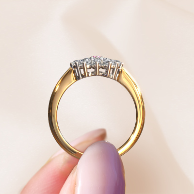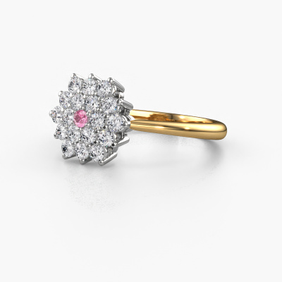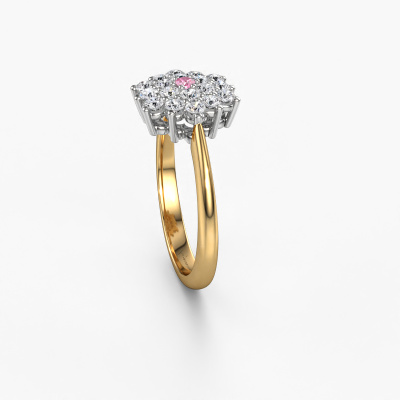 Der oben gezeigte Ring wird Vickey genannt. Ein Flower Ring mit einem zentralen Edelstein, umgeben von kleineren Steinen, wir nennen das einen Cluster Ring. Diese Version in 14 Karat Gold hat einen 2 mm rund Pink Saphir als Mittelstein, umschlossen von kleineren Diamanten. Der klassische, Gold Flower Verlobungsring zeichnet sich durch seine Form aus. Zusammen bilden die kleineren und größeren Pink Saphir eine Blume und scheinen zu einem großen, funkelnden Edelstein zu verschmelzen. Dieser klassische Verlobungsring wird auch als Blumen- oder Rosettenring bezeichnet. Unsere erfahrenen Juweliere stellen sicher, dass die kleineren Diamanten identisch gesetzt sind, so dass es an dem Pink Saphir keine Lichtstörungen gibt, sondern sie stattdessen eine Einheit bilden. Mit perfekter Präzision und geschickter Hand wird jeder Pink Saphir in den Ring gesetzt. Während der Herstellung wird alles ständig überwacht, um sicherzustellen, dass das Licht einwandfrei reflektiert wird. Das alles führt zu einem einzigartigen Verlobungsring mit einem strahlenden Pink Saphir in seiner Mitte. Ein schönes, bedeutungsvolles Geschenk, um es der Liebe Ihres Lebens zu schenken. Da wir unsere eigenen Ringe entwerfen und liefern, können wir Ihnen einen Verlobungsring zu einem Preis anbieten, den Sie nirgendwo anders finden. Ein Ring wird auf Bestellung angefertigt, wodurch kein überschüssiges Material anfällt. So können wir Ihnen ein gutes Angebot zum besten Preis machen. Wir verstehen, dass es sich riskant anfühlt, Ihren Verlobungsring online zu kaufen. Jedoch helfen wir Ihnen gerne beim Designprozess unter Berücksichtigung Ihres Budgets.Unsere Designer und Goldschmiede arbeiten jeden Tag zusammen und versuchen, neue Schmuckstücke zu kreieren. Vielleicht haben Sie irgendwo einen schönen, klassische Verlobungsring gefunden, nach dem Ihr einzigartiger Ring gestaltet werden kann. Setzen Sie sich mit uns in Verbindung. Wir machen Ihnen ein Angebot, basierend auf einem fairen Preis/Leistungsverhältnis, das Sie begeistern wird.Um es einfacher zu machen, bieten wir eine kostenlose 30-tägige Rücksendung.