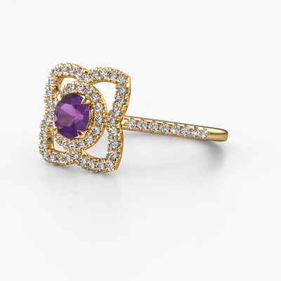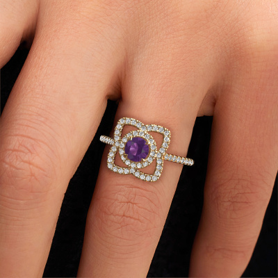 Dieser Verlobungsring aus 14 Karat Gold heißt Cleopatra und hat einen Amethyst Edelstein. Ein außergewöhnlicher, Gold Vintage Ring. Einer, der die Liebe Ihres Lebens mit Sicherheit wie ein Amethyst erstrahlen lässt! Das hoffen wir zu erreichen. Dieser Vintage Verlobungsring ist mit exquisiten Amethysten besetzt. Welchen Edelstein Sie aus unserer Auswahl haben möchten, liegt ganz bei Ihnen. Der Edelstein wird mit großer Sorgfalt ausgewählt. Denn wir glauben, dass Ihr Verlobungsring nur mit dem schönsten Edelstein gekrönt sein darf. Sehen Sie das auch so? Unser erfahrener Juwelier entwirft Ihren Ring in unserem eigenen Studio, wo der Amethyst mit großer Präzision eingefasst wird. Der Ring wird dann bearbeitet und poliert, bis er perfekt ist. Nichts als das Beste für die Liebe Ihres Lebens! Jedes Schmuckstück wird nur für Sie persönlich hergestellt, mit Liebe zum Detail und Design.Nach Erhalt Ihrer Bestellung beginnen unsere Goldschmiede mit Leidenschaft den kreativen Prozess und fertigen Ihren Verlobungsring in unserem eigenen Studio. Da wir keine großen Lager haben, werden diese Kosten nicht an Sie weitergegeben. Unsere Preisgestaltung ist der Beweis dafür! Wir bieten Schmuck zum niedrigsten Preis, garantiert.Haben Sie irgendwo einen bestimmten Verlobungsring gefunden, den Sie Ihrem Liebsten schenken möchten? Sie können uns gerne sagen, was Sie wollen und wir werden Ihr Design in einen Einzigartigen Vintage Verlobungsring verwandeln. Sie können die Entwicklungen Ihres Ringdesigns verfolgen, da wir 3D-Zeichnungen verwenden. Das gibt Ihnen eine realistische Vorschau, wie Ihr Design aussehen wird. Sie können auch einen Dummy vorbestellen. Ein Dummy ist ein Kunststoffring, der nach Ihrem Ringdesign gestaltet werden kann. Sie können ihn anprobieren und prüfen, ob seine Breite und Größe für Sie geeignet sind. Wir senden Ihnen gerne ein unverbindliches Angebot zu einem fairen Preis/Leistungsverhältnis. Sie werden in Anbetracht der Qualität des Rings und der Edelsteine überrascht sein.Um es einfacher zu machen, bieten wir eine kostenlose 30-tägige Rücksendung.