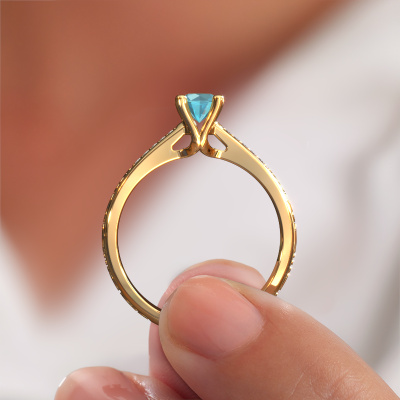 Dieser Verlobungsring aus 14 Karat Gold heißt Mei und hat einen Blau Topas Edelstein. Ein außergewöhnlicher, Gold Vintage Ring. Einer, der die Liebe Ihres Lebens mit Sicherheit wie ein Blau Topas erstrahlen lässt! Das hoffen wir zu erreichen. Dieser Keltische Verlobungsring ist mit exquisiten Blaue Topas besetzt. Welchen Edelstein Sie aus unserer Auswahl haben möchten, liegt ganz bei Ihnen. Der Edelstein wird mit großer Sorgfalt ausgewählt. Denn wir glauben, dass Ihr Verlobungsring nur mit dem schönsten Edelstein gekrönt sein darf. Sehen Sie das auch so? Unser erfahrener Juwelier entwirft Ihren Ring in unserem eigenen Studio, wo der Blau Topas mit großer Präzision eingefasst wird. Der Ring wird dann bearbeitet und poliert, bis er perfekt ist. Nichts als das Beste für die Liebe Ihres Lebens! Jedes Schmuckstück wird nur für Sie persönlich hergestellt, mit Liebe zum Detail und Design.Haben Sie ein bestimmtes Budget? Sie können uns gerne kontaktieren, damit wir Ihre Optionen besprechen können. Wir bieten unsere Verlobungsringe zum garantiert besten Preis, denn wir fertigen sie auf Bestellung. Solche Preise finden Sie nirgendwo anders!Unser Team fügt unserer Online-Kollektion täglich neue Designs hinzu. Unsere Designer und Goldschmiede arbeiten zusammen, um das beste Design zu kreieren. Wir bemühen uns, eine vielfältige Kollektion von Schmuckstücken anzubieten. Vielleicht haben Sie ein bestimmtes Design im Sinn. Eines, dass Sie irgendwo gesehen haben. Gerne geben wir Ihnen eine kostenlose Beratung. Wir machen Ihnen ein Angebot, basierend auf einem fairen Preis/Leistungsverhältnis, das Sie verblüffen wird.Um es einfacher zu machen, bieten wir eine kostenlose 30-tägige Rücksendung.
