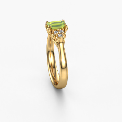 Dieser Verlobungsring aus 14 Karat Gold heißt Myrna EME. Dieser filigrane Gold Verlobungsring mit 6x4 mm Peridot ist ein wahres Kunstwerk! Ein wunderschön geschmücktes Design aus komplizierten Drähten. Mit Hingabe, Geduld und äußerster Präzision werden unsere erfahrenen Juweliere einen Ring nur für Sie entwerfen. Die Verzierungen mit kleinen Drähten werden von Hand in Perfektion gefertigt. Das ist ein langwieriger Prozess, der Schweißen, Werkzeug und Polieren umfasst, bis der erfahrene Juwelier mit dem Ergebnis zufrieden ist: Ein perfekter, auffälliger Ring, der ihn mit Freude zum Strahlen bringt. Deshalb ist der Vintage, filigrane Verlobungsring ein außergewöhnliches Geschenk, um die Liebe Ihres Lebens zu verwöhnen. Ein handgemachter, einzigartiger und personalisierter Ring, den man jemandem in diesem besonderen Moment geben kann, wenn man die eine Frage stellt. Ist das nicht wunderbar? Jedes Schmuckstück ist einzigartig in jeder Hinsicht! Einfach nach Ihren Wünschen anzupassen.Mit unserer modernen Technik können wir Schmuckstücke von höchster Qualität mit größter Sorgfalt für Sie entwerfen und anpassen. Unsere Verlobungsringe sind immer um 30 Prozent günstiger als bei anderen Juwelieren. Wir fertigen Verlobungsringe auf Bestellung, also müssen wir keine großen Lager unterhalten. Wenn Sie ein bestimmtes Budget haben, beraten wir Sie gerne entsprechend.Haben Sie irgendwo einen bestimmten Verlobungsring gefunden, den Sie Ihrem Liebsten schenken möchten? Sie können uns gerne sagen, was Sie wollen und wir werden Ihr Design in einen Einzigartigen Vintage Verlobungsring verwandeln. Sie können die Entwicklungen Ihres Ringdesigns verfolgen, da wir 3D-Zeichnungen verwenden. Das gibt Ihnen eine realistische Vorschau, wie Ihr Design aussehen wird. Sie können auch einen Dummy vorbestellen. Ein Dummy ist ein Kunststoffring, der nach Ihrem Ringdesign gestaltet werden kann. Sie können ihn anprobieren und prüfen, ob seine Breite und Größe für Sie geeignet sind. Wir senden Ihnen gerne ein unverbindliches Angebot zu einem fairen Preis/Leistungsverhältnis. Sie werden in Anbetracht der Qualität des Rings und der Edelsteine überrascht sein.Um es einfacher zu machen, bieten wir eine kostenlose 30-tägige Rücksendung.