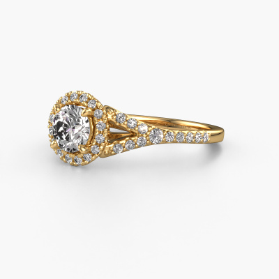 Der oben gezeigte Gold Verlobungsring wird Kimber RND genannt. Es ist ein Pavé Solitär Ring, da er einen zentralen Edelstein und ein Band mit Pavé-Fassung hat. Der klassische Pavé Solitär Verlobungsring ist in der Kombination 14 Karat Gold mit Gold und ist mit einem rund 0.60 crt Diamant-Mittelstein besetzt und das Band hat eine Pavé-Fassung mit Lab grown Diamant. Jedes Schmuckstück ist um Ihrem Finger Glanz zu verleihen. Jeder Ring wird von unseren Goldschmieden liebevoll von Hand gefertigt. Um den zentralen Stein noch mehr zu betonen, hat das Band eine Pavé-Fassung mit weiteren Diamant. Durch die offenen Krappen kann das Licht aus mehreren Winkeln auf den Diamant treffen und der Diamant-Ring funkelt noch mehr. Das obere Foto zeigt die leidenschaftlich handgefertigten Details des Rings. Die hohe Positionierung der Mittelstein ist ein echter Blickfang. Der perfekte Verlobungsring für das Kronjuwel Ihres Lebens!Nach Erhalt Ihrer Bestellung beginnen unsere Goldschmiede mit Leidenschaft den kreativen Prozess und fertigen Ihren Verlobungsring in unserem eigenen Studio. Da wir keine großen Lager haben, werden diese Kosten nicht an Sie weitergegeben. Unsere Preisgestaltung ist der Beweis dafür! Wir bieten Schmuck zum niedrigsten Preis, garantiert.Unser Team fügt unserer Online-Kollektion täglich neue Designs hinzu. Unsere Designer und Goldschmiede arbeiten zusammen, um das beste Design zu kreieren. Wir bemühen uns, eine vielfältige Kollektion von Schmuckstücken anzubieten. Vielleicht haben Sie ein bestimmtes Design im Sinn. Eines, dass Sie irgendwo gesehen haben. Gerne geben wir Ihnen eine kostenlose Beratung. Wir machen Ihnen ein Angebot, basierend auf einem fairen Preis/Leistungsverhältnis, das Sie verblüffen wird.Um es einfacher zu machen, bieten wir eine kostenlose 30-tägige Rücksendung.