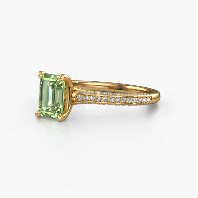 Der oben gezeigte Ring wird Elenore eme genannt. Es ist ein Pavé Solitär Ring, da er einen zentralen Edelstein und ein Band mit Pavé-Fassung hat. Dieser 14 Karat Gold ring ist mit einem 7x5 mm smaragd schliff grüner Labor-Diamant-Mittelstein besetzt und das Band hat eine Pavé-Fassung mit Lab grown Diamant. Jedes Schmuckstück wird nur für Sie persönlich hergestellt, mit Liebe zum Detail und Design.Dieser exklusive Gold Pavé Solitär Verlobungsring mit Pavé-Fassung hat einen exquisiten, smaragd schliff grüner Labor-Diamant als Mittelstein. Um den zentralen Stein noch mehr zu betonen, hat das Band eine Pavé-Fassung mit weiteren Lab grown Diamant. Durch die offenen Krappen kann das Licht aus mehreren Winkeln auf den grüner Labor-Diamant treffen und der grüner Labor-Diamant-Ring funkelt noch mehr. Das obere Foto zeigt die leidenschaftlich handgefertigten Details des Rings. Die hohe Positionierung der Mittelstein ist ein echter Blickfang. Der perfekte Verlobungsring für das Kronjuwel Ihres Lebens!Haben Sie ein bestimmtes Budget? Sie können uns gerne kontaktieren, damit wir Ihre Optionen besprechen können. Wir bieten unsere Verlobungsringe zum garantiert besten Preis, denn wir fertigen sie auf Bestellung. Solche Preise finden Sie nirgendwo anders!Haben Sie irgendwo einen bestimmten Verlobungsring gefunden, den Sie Ihrem Liebsten schenken möchten? Sie können uns gerne sagen, was Sie wollen und wir werden Ihr Design in einen Einzigartigen exklusive Verlobungsring verwandeln. Sie können die Entwicklungen Ihres Ringdesigns verfolgen, da wir 3D-Zeichnungen verwenden. Das gibt Ihnen eine realistische Vorschau, wie Ihr Design aussehen wird. Sie können auch einen Dummy vorbestellen. Ein Dummy ist ein Kunststoffring, der nach Ihrem Ringdesign gestaltet werden kann. Sie können ihn anprobieren und prüfen, ob seine Breite und Größe für Sie geeignet sind. Wir senden Ihnen gerne ein unverbindliches Angebot zu einem fairen Preis/Leistungsverhältnis. Sie werden in Anbetracht der Qualität des Rings und der Edelsteine überrascht sein.Um es einfacher zu machen, bieten wir eine kostenlose 30-tägige Rücksendung.