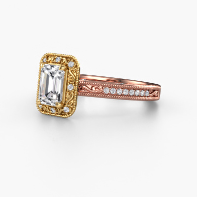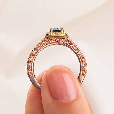 Dieser Verlobungsring aus 585 Roségold heißt Alice EME und hat einen 1.10 crt Diamant. Ein außergewöhnlicher, Roségold Vintage Ring. Einer, der die Liebe Ihres Lebens mit Sicherheit wie ein Diamant erstrahlen lässt! Das hoffen wir zu erreichen. Dieser Vintage Verlobungsring ist mit exquisiten Diamant besetzt. Welchen Edelstein Sie aus unserer Auswahl haben möchten, liegt ganz bei Ihnen. Der Edelstein wird mit großer Sorgfalt ausgewählt. Denn wir glauben, dass Ihr Perle Ränder Verlobungsring nur mit dem schönsten Edelstein gekrönt sein darf. Sehen Sie das auch so? Unser erfahrener Juwelier entwirft Ihren Ring in unserem eigenen Studio, wo der Diamant mit großer Präzision eingefasst wird. Der Ring wird dann bearbeitet und poliert, bis er perfekt ist. Nichts als das Beste für die Liebe Ihres Lebens! Jedes Schmuckstück wird von unseren Meister-Goldschmieden in unserem eigenen Studio für Sie gefertigt.Durch die Kombination modernster Technik mit uralter Handwerkskunst können wir alle Verlobungsringe in unserem eigenen Studio anfertigen. Jedes Schmuckstück wird auf Anfrage gefertigt. Das ist vorteilhaft, weil wir Ihnen dadurch einen Preis anbieten können, den Sie nirgendwo anders finden.Haben Sie einen bestimmten Ring im Sinn? Eines, dass Sie irgendwo gesehen haben. Bitte zögern Sie nicht, uns zu sagen, was Sie wollen und wir werden Ihr Design in einen Einzigartigen Verlobungsring verwandeln. Sie können die Entwicklungen Ihres Ringdesigns verfolgen, da wir 3D-Zeichnungen verwenden. Das gibt Ihnen eine realistische Vorschau Ihres Designs. Wir senden Ihnen gerne ein unverbindliches Angebot zu einem fairen Preis/Leistungsverhältnis. Es wird Sie erstaunen.Um es einfacher zu machen, bieten wir eine kostenlose 30-tägige Rücksendung.