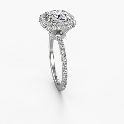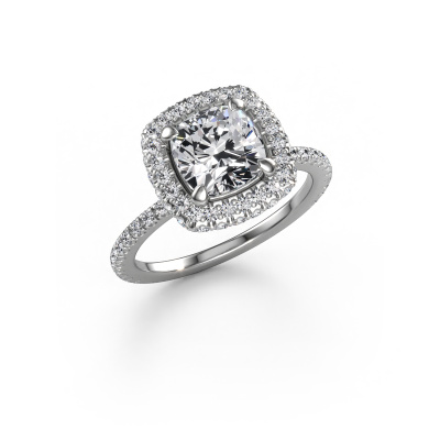 Der oben gezeigte Verlobungsring wird Talitha CUS genannt. Es ist ein Halo Ring, da er einen zentralen Edelstein und ein Band mit Pavé-Fassung hat. Der 585 Weißgold ring ist mit einem 2.00 crt cussion Diamant-Mittelstein besetzt und um ihn herum eine Pavé-Fassung mit Diamanten. Was diesen traditionell, Weißgold Halo Ring besonders macht, sind die kleineren Steine, die den zentralen Stein umschließen. Dieser wunderschöne Verlobungsring wird als Halo Ring bezeichnet, da die kleineren Edelsteine dem zentralen Stein einen Lichthof geben. Damit die kleineren Steine den Mittelstein verstärken, müssen sie so platziert werden, dass keine Lichteinflüsse auftreten. Und hier kommen unsere erfahrenen Goldschmiede ins Spiel. Jeder einzelne Stein wird sorgfältig von Hand in den Ring gesetzt. Während der Herstellung wird der Lichteinfall ständig überprüft. So können wir sicherstellen, dass der spezielle Lichtkranz noch sichtbar ist. Am Ende erhalten Sie einen einzigartigen Verlobungsring mit einem Diamanten Ihrer Wahl in der Mitte. Sie können sich die Wirkung eines solchen Ringes vorstellen, wenn Sie ihn an ihrem besonderen Tag für sie zum Leuchten bringen. Da wir unsere eigenen Ringe entwerfen und liefern, können wir Ihnen einen Verlobungsring zu einem Preis anbieten, den Sie nirgendwo anders finden. Ein Ring wird auf Bestellung angefertigt, wodurch kein überschüssiges Material anfällt. So können wir Ihnen ein gutes Angebot zum besten Preis machen. Wir verstehen, dass es sich riskant anfühlt, Ihren Verlobungsring online zu kaufen. Jedoch helfen wir Ihnen gerne beim Designprozess unter Berücksichtigung Ihres Budgets.Unsere Designer und Goldschmiede arbeiten jeden Tag zusammen und versuchen, neue Schmuckstücke zu kreieren. Vielleicht haben Sie irgendwo einen schönen, traditionell Verlobungsring gefunden, nach dem Ihr einzigartiger Ring gestaltet werden kann. Setzen Sie sich mit uns in Verbindung. Wir machen Ihnen ein Angebot, basierend auf einem fairen Preis/Leistungsverhältnis, das Sie begeistern wird.Um es einfacher zu machen, bieten wir eine kostenlose 30-tägige Rücksendung.