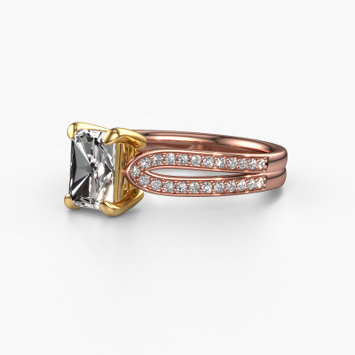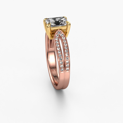 Der oben gezeigte Roségold Verlobungsring wird Antonia rad 2 genannt. Es ist ein Pavé Solitär Ring, da er einen zentralen Edelstein und ein Band mit Pavé-Fassung hat. Der schicke Pavé Solitär Verlobungsring ist in der Kombination 14 Karat Roségold mit Gold und ist mit einem radiant 1.00 crt Lab-grown Diamant-Mittelstein besetzt und das Band hat eine Pavé-Fassung mit Diamanten. Jedes Schmuckstück wird von unseren Meister-Goldschmieden in unserem eigenen Studio für Sie gefertigt. Um den zentralen Stein noch mehr zu betonen, hat das Band eine Pavé-Fassung mit weiteren Lab-grown Diamant. Durch die offenen Krappen kann das Licht aus mehreren Winkeln auf den Lab-grown Diamant treffen und der Lab-grown Diamant-Ring funkelt noch mehr. Das obere Foto zeigt die leidenschaftlich handgefertigten Details des Rings. Die hohe Positionierung der Mittelstein ist ein echter Blickfang. Der perfekte Verlobungsring für das Kronjuwel Ihres Lebens!Da wir unsere eigenen Ringe entwerfen und liefern, können wir Ihnen einen Verlobungsring zu einem Preis anbieten, den Sie nirgendwo anders finden. Ein Ring wird auf Bestellung angefertigt, wodurch kein überschüssiges Material anfällt. So können wir Ihnen ein gutes Angebot zum besten Preis machen. Wir verstehen, dass es sich riskant anfühlt, Ihren Verlobungsring online zu kaufen. Jedoch helfen wir Ihnen gerne beim Designprozess unter Berücksichtigung Ihres Budgets.Unser Team fügt unserer Online-Kollektion täglich neue Designs hinzu. Unsere Designer und Goldschmiede arbeiten zusammen, um das beste Design zu kreieren. Wir bemühen uns, eine vielfältige Kollektion von Schmuckstücken anzubieten. Vielleicht haben Sie ein bestimmtes Design im Sinn. Eines, dass Sie irgendwo gesehen haben. Gerne geben wir Ihnen eine kostenlose Beratung. Wir machen Ihnen ein Angebot, basierend auf einem fairen Preis/Leistungsverhältnis, das Sie verblüffen wird.Um es einfacher zu machen, bieten wir eine kostenlose 30-tägige Rücksendung.