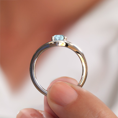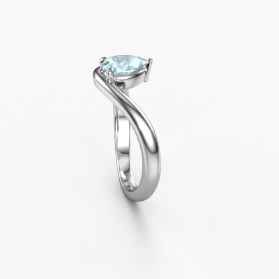 Dieser Verlobungsring aus 14 Karat Weißgold heißt Femke PER. Sind Sie auf der Suche nach einem Luxus, Weißgold Verlobungsring mit Aquamarin 7x5 mm, den Sie nach Ihren Wünschen gestalten können? Dieser Luxus Verlobungsring ist mit Aquamarin