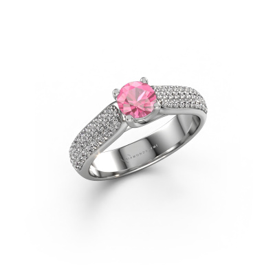 Der oben gezeigte Ring, mit dem Namen Leoness, nennen wir einen Pavé Solitär Verlobungsring. Der Cluster Ring trägt einem zentralen Edelstein, umgeben von kleineren Steinen. Diese Version in Platin hat einen rund Pink Saphir von rund als Mittelstein, umschlossen von kleineren Diamanten. Was diesen klassische Platin Pavé Solitär Ring besonders macht, sind die kleinen Edelsteine rund um den zentralen Pink Saphir, die wie eine schöne Blume geformt sind. Der umgebende Steinkranz umrahmt den Mittelstein so, dass er größer erscheint. Diese Art von Verlobungsring wird auch Blumen- oder Rosettenring genannt. Es ist sehr wichtig, dass die kleineren Pink Saphir identisch positioniert sind, so dass es kein Spiel im Licht, sondern eine perfekte Einheit ergibt. Unsere erfahrenen Juweliere erledigen diese Arbeit. Jeder einzelne Stein wird sorgfältig von Hand gesetzt. Während der Herstellung wird der Lichteinfall ständig überwacht, um sicherzustellen, dass der spezielle Pavé Solitär-Effekt noch sichtbar ist. Am Ende bekommen Sie den perfekten Verlobungsring mit einem strahlenden Pink Saphir Edelstein Herzstück. Sie können sich die Wirkung eines solchen Ringes vorstellen, wenn Sie ihn an ihrem besonderen Tag für die Liebe Ihres Lebens zum Leuchten bringen. Jedes Schmuckstück ist einzigartig in jeder Hinsicht! Einfach nach Ihren Wünschen anzupassen.Mit unserer modernen Technik können wir Schmuckstücke von höchster Qualität mit größter Sorgfalt für Sie entwerfen und anpassen. Unsere Verlobungsringe sind immer um 30 Prozent günstiger als bei anderen Juwelieren. Wir fertigen Verlobungsringe auf Bestellung, also müssen wir keine großen Lager unterhalten. Wenn Sie ein bestimmtes Budget haben, beraten wir Sie gerne entsprechend.Haben Sie irgendwo einen bestimmten Verlobungsring gefunden, den Sie Ihrem Liebsten schenken möchten? Sie können uns gerne sagen, was Sie wollen und wir werden Ihr Design in einen Einzigartigen klassische Verlobungsring verwandeln. Sie können die Entwicklungen Ihres Ringdesigns verfolgen, da wir 3D-Zeichnungen verwenden. Das gibt Ihnen eine realistische Vorschau, wie Ihr Design aussehen wird. Sie können auch einen Dummy vorbestellen. Ein Dummy ist ein Kunststoffring, der nach Ihrem Ringdesign gestaltet werden kann. Sie können ihn anprobieren und prüfen, ob seine Breite und Größe für Sie geeignet sind. Wir senden Ihnen gerne ein unverbindliches Angebot zu einem fairen Preis/Leistungsverhältnis. Sie werden in Anbetracht der Qualität des Rings und der Edelsteine überrascht sein.Um es einfacher zu machen, bieten wir eine kostenlose 30-tägige Rücksendung.